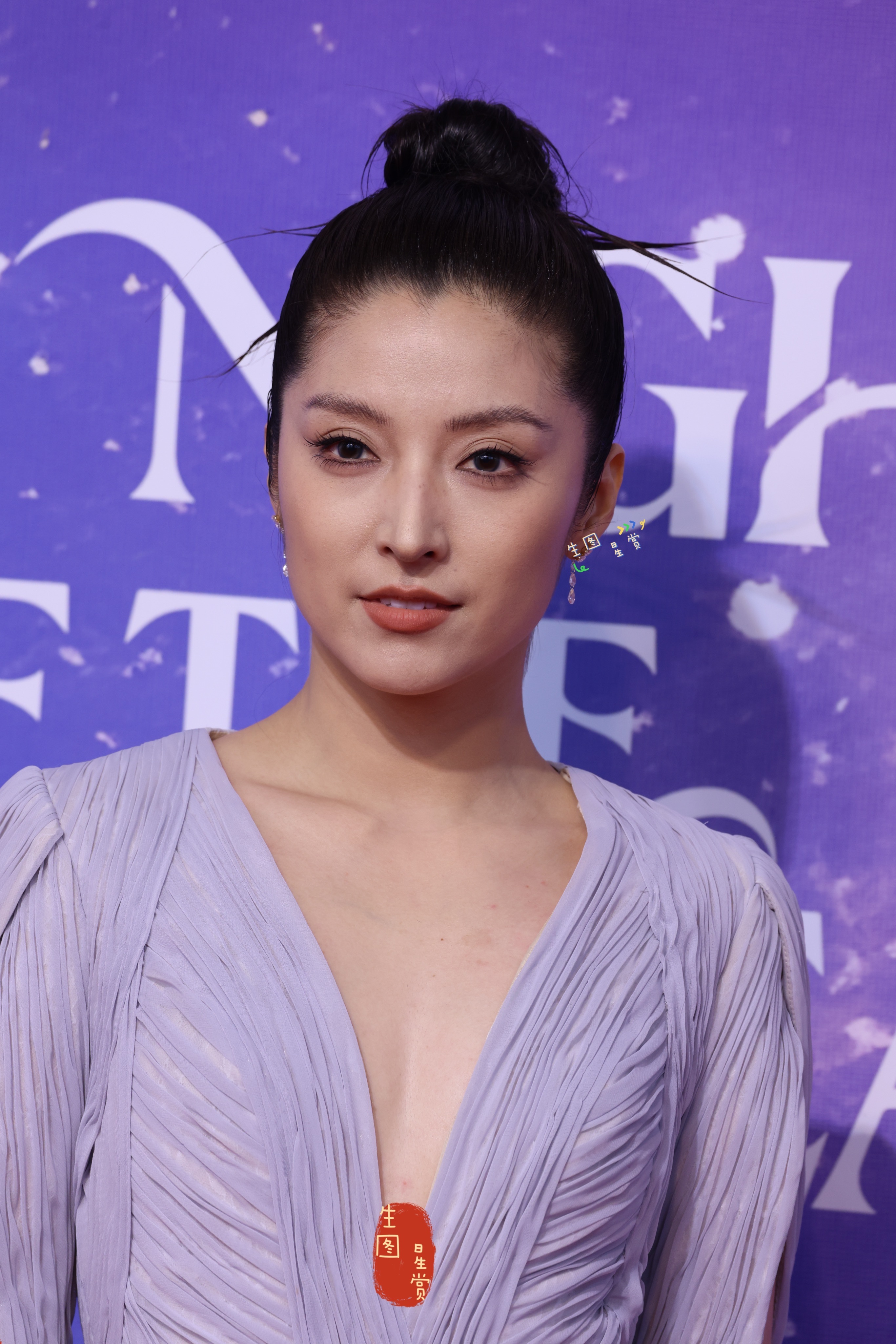 潘辰心光时尚盛典红毯出图古风侠女发型好飒,紫色开胸礼服冷美💜心光年度时尚盛典