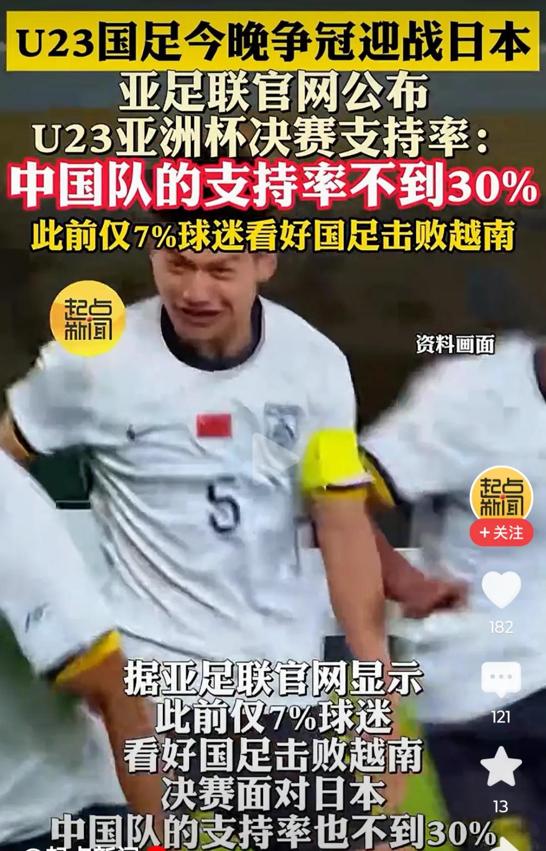 今晚23点,U23国足将迎来历史性一战——对阵卫冕冠军日本队,争夺亚洲杯冠军!别看现在支持率只有30%,要知道半决赛打越南前,看好咱们的人才7%。结果呢?3比0干净利落拿下,狠狠打了质疑者的脸! 这支U23国足,五场比赛一球未失,门将李昊成了“叹息之墙”,后防线稳如铁闸。他们不是靠运气,而是靠拼劲、纪律和战术执行力,一路从第四档球队杀进决赛,已经创造了奇迹。 日本队确实强,技术细腻、进攻犀利,5场轰进12球。但足球不是纸面算账——中日U23交手三次,咱们还赢过两回!而且日本主力中卫半决赛受伤,防空正是咱们的强项。定位球、反击、心态,都是我们的机会。 30%的支持率不可怕,可怕的是不敢相信自己。这群00后小伙子早已习惯在质疑中前行。今夜,他们不是为数据而战,是为信念、为荣誉、为中国足球的尊严而战!哪怕不被看好,也要亮剑到底。万一,奇迹就发生在今晚呢?一起加油!