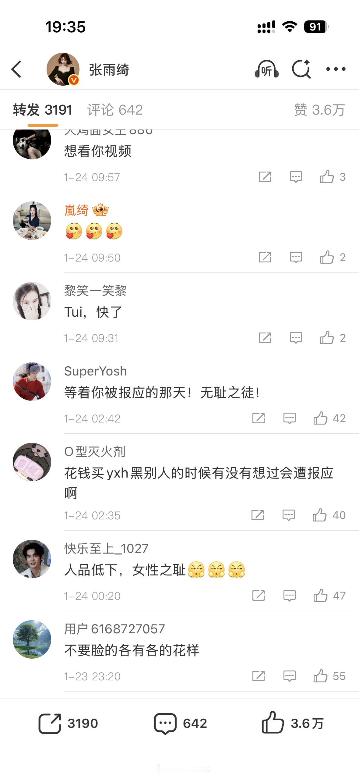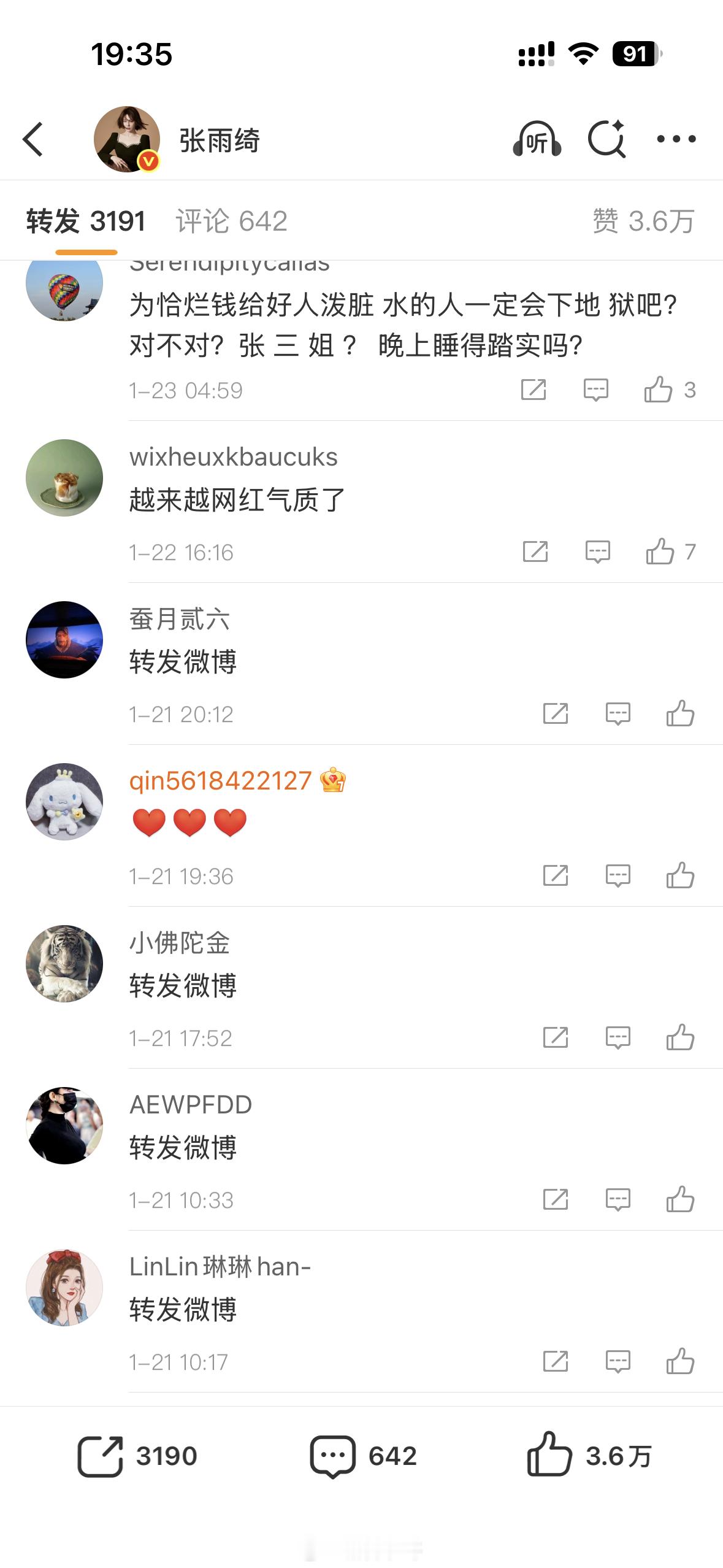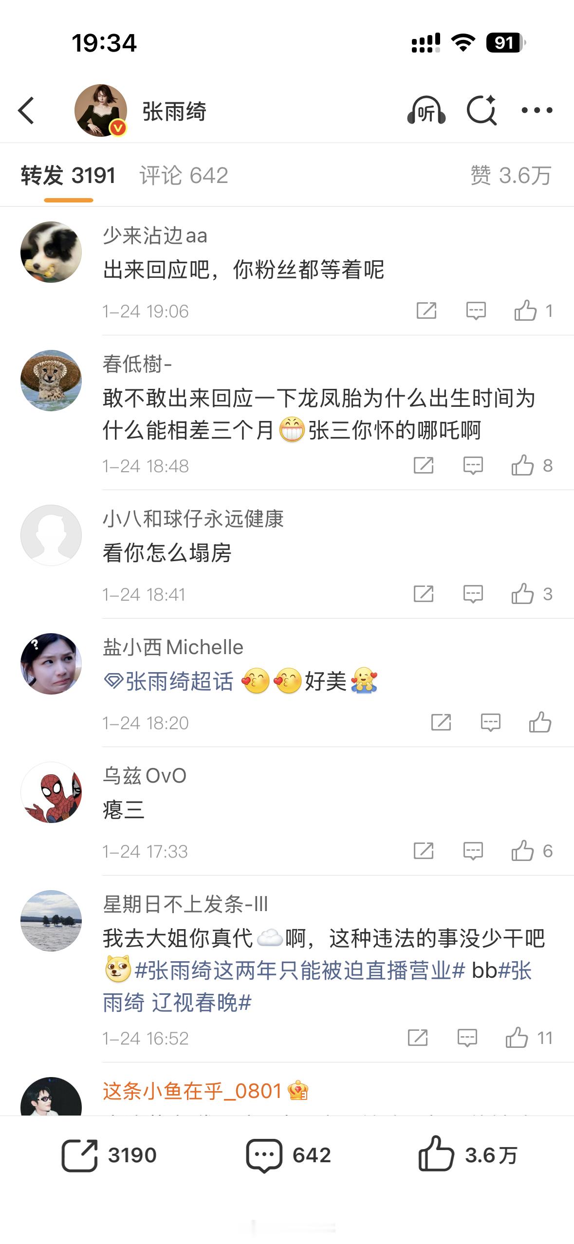 张雨绮被葛晓倩锤后,转发区都是让她不要装死的