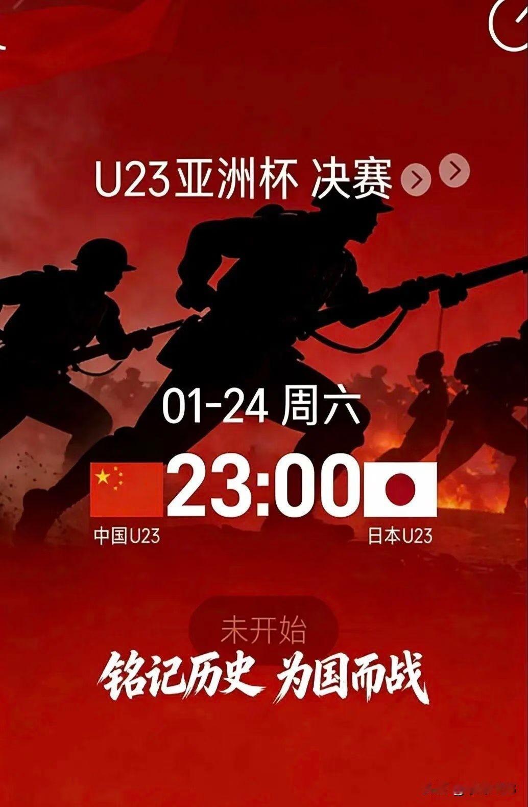 北京时间今晚23:00 U23国足决战日本U23,目标夺冠! 为22年前国足老大哥们的遗憾而战! 届时各位打开手机、电视、电脑,一起为中国足球的第一个亚洲杯冠军呐喊、加油!