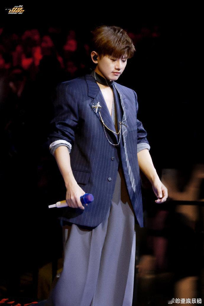 丁程鑫好六街提前过年你好星期六小丁穿黑色西装的舞台造型帅炸了,利落的动作搭配灯光