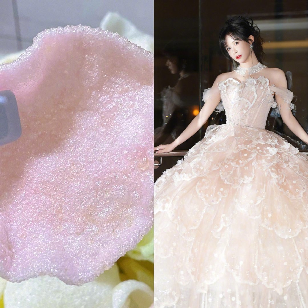 段艺璇像把超大虾片穿身上段艺璇如此梦幻的礼裙竟然跟虾片撞了?!粉白渐变的蓬松裙摆+亮晶晶的褶皱质感,太像了吧