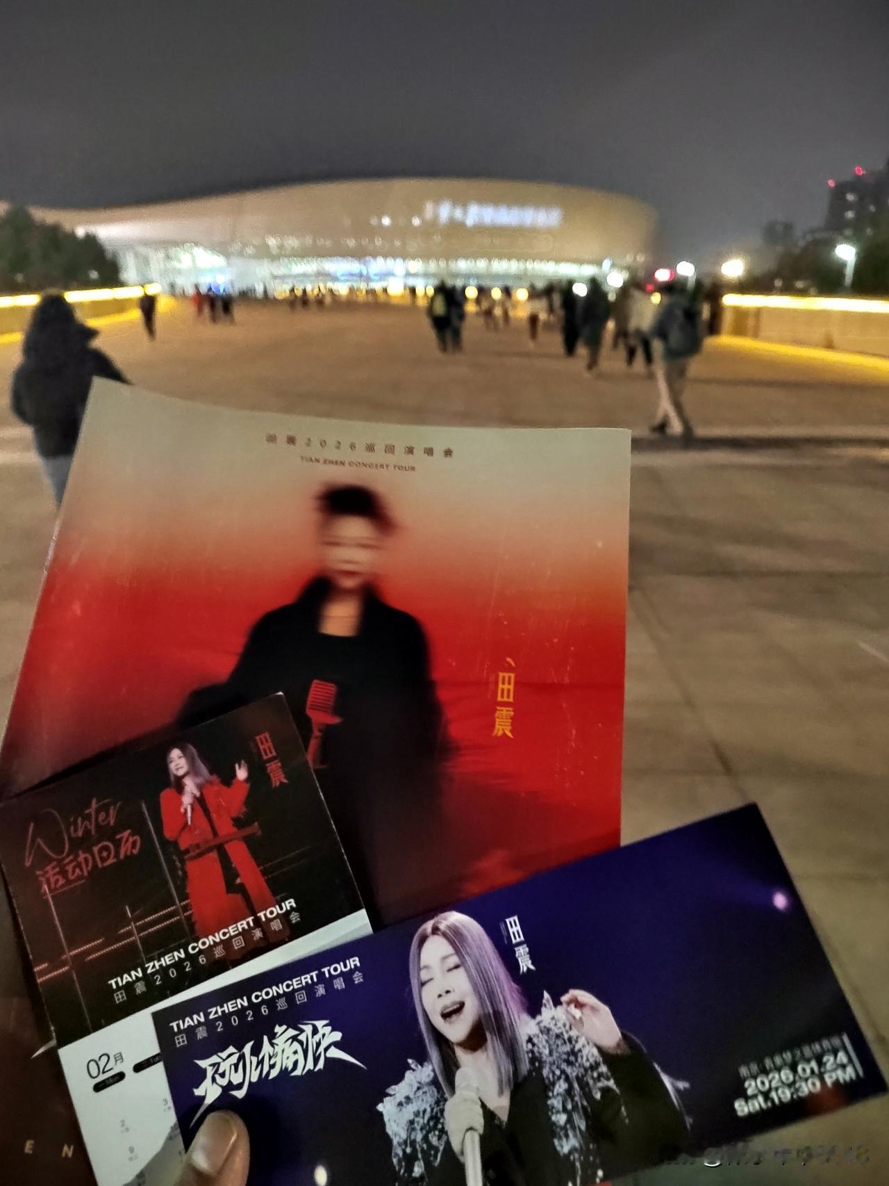 南京青奥体育公园体育馆,看田震2026巡回演唱会 今天下午五点从家里出发,坐公交车来到了江北新区南京梦之蓝青奥体育公园。晚上六点多钟,随着看演唱会的人流,从横江大道附近的一号门检票进入体育馆,等待晚上七点半开始的演唱会。每个人的座位上还有一支荧光棒。 田震2026巡回演唱会以一曲《玩儿个痛快》震撼开场,现场激情演唱了30多首歌曲,最后以一曲《风雨彩虹,铿锵玫瑰》结束了今晚的演唱会,让全场的歌迷们直呼过瘾。今晚的南京青奥体育公园体育馆见证了岁月铿锵,玫瑰依然。