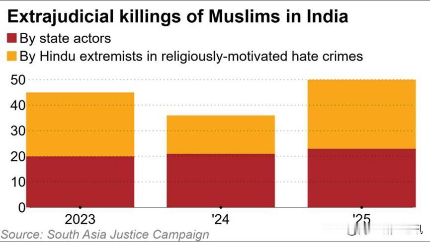 《日经亚洲》1月22日报道, 2025年印度境内针对穆斯林群体的法外处决、大规模