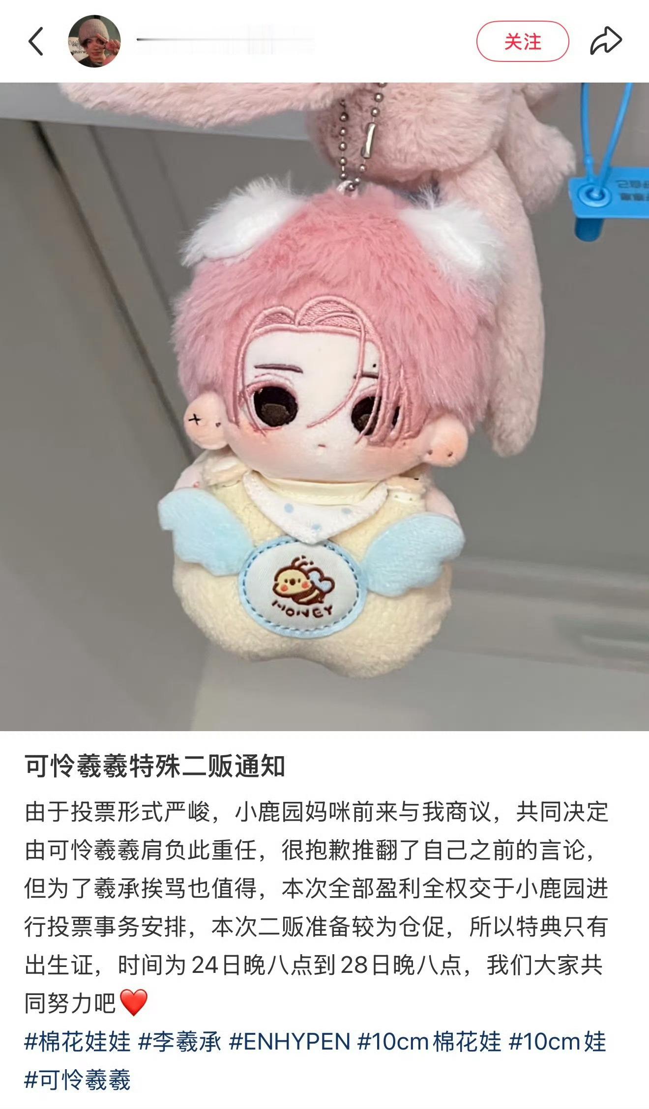 李羲承 市价目前一百多的可怜羲羲特殊二贩了~全部盈利用于upick投票❗️大家今晚八点锁定可怜羲羲🥰