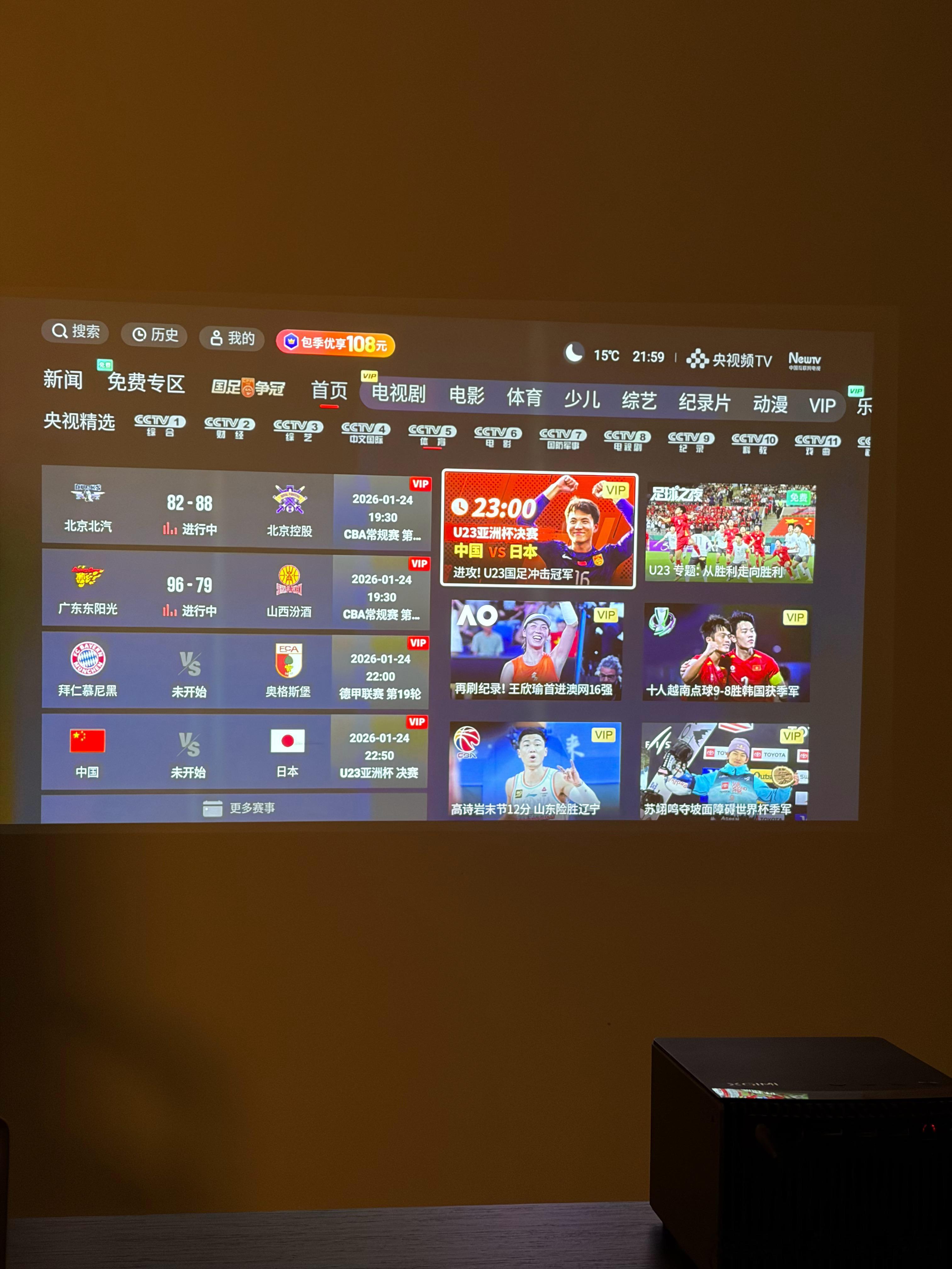 为了今晚U23国足,我拿出了三年没打开过的投影,发现TV版看比赛全都要会员,PC/手机/Pad这些都不用……还是想看大屏比较爽,为了支持国足,我还是决定……投个屏吧亚洲杯u23国足