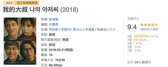 《我的大叔》不是一部“贩卖希望”的励志剧,也不是讲“大叔与少女”之间忘年恋的爱情剧,它是一部偏文艺风格的现实题材剧,呈现了一种极致的、无人问津的绝望,因为生存严酷、人情冷漠,才显得男女主角之间微小的温暖无比珍贵。