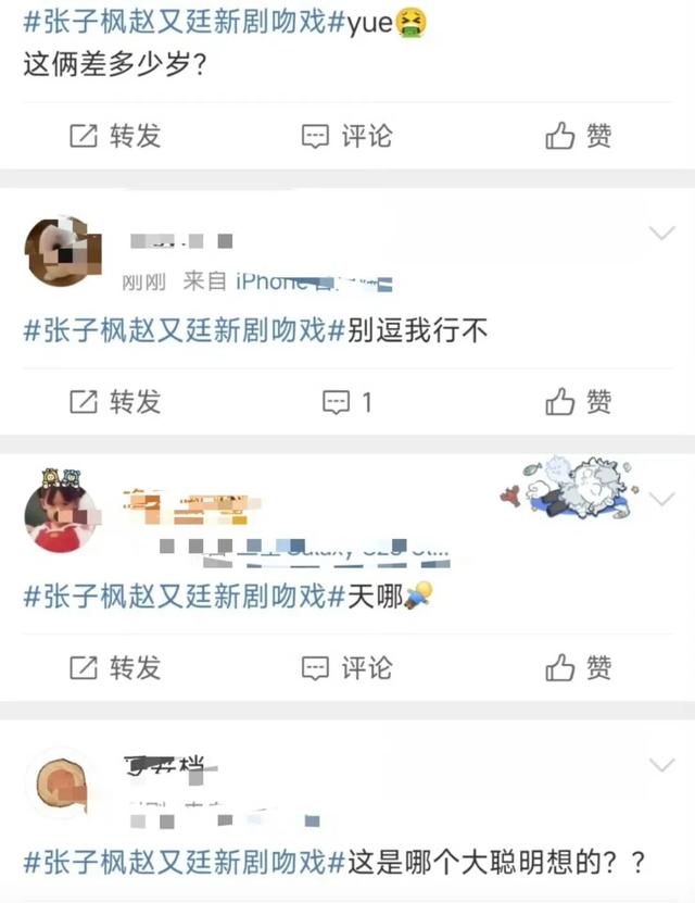 17岁的实际年龄差在剧中因张子枫的少女感被放大,当她踮脚吻向赵又廷时,画面的尴尬程度无异于“吃错药”的即视感。