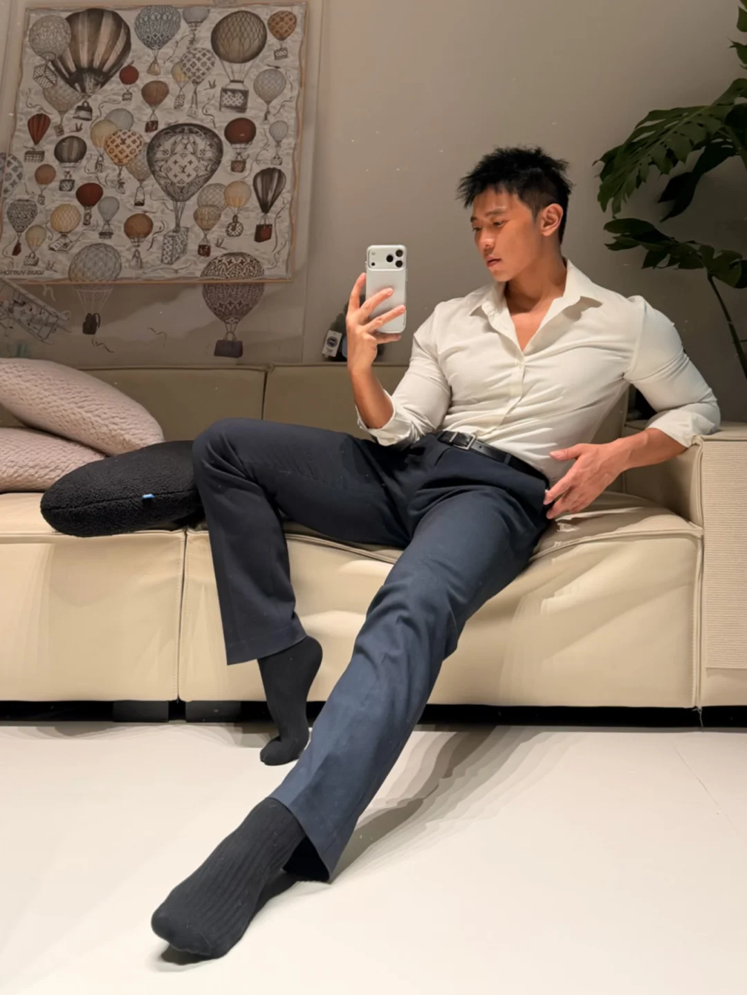 这袜子穿的,乍一看像冯小刚的脸上皮肤