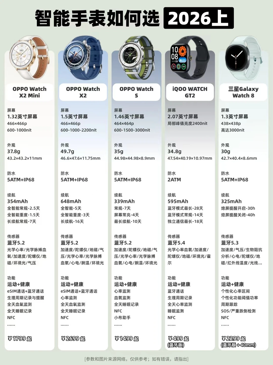 🔹喜欢圆表:如OPPO Watch X2 Mini / X2 / S、三星Galaxy Watch8、华为WATCH GT6 / GT6 Pro等;