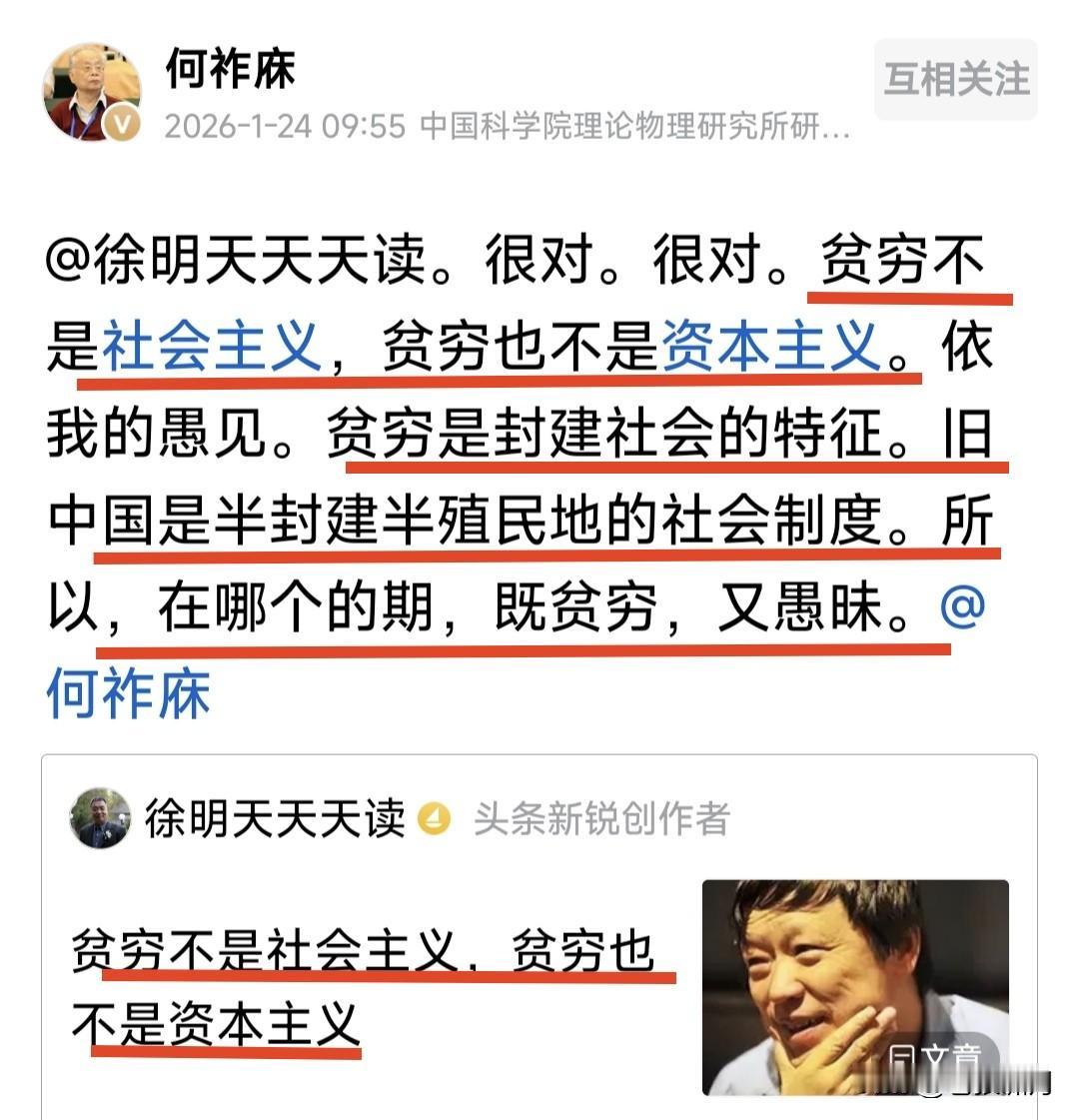 胡锡进谈“贫穷不是社会主义”!何祚庥院士跟评:贫穷不是社会主义,而是封建与半封建