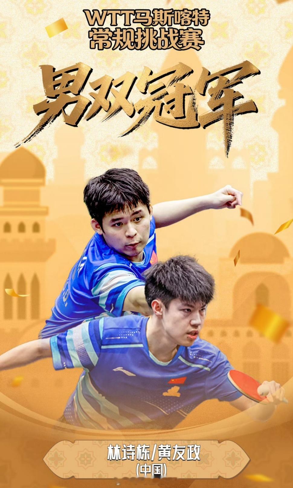 林诗栋黄友政男双夺冠WTT马斯喀特常规挑战赛男双决赛,林诗栋/黄友政3比1战胜弗朗西斯卡/杜达,夺得冠军!林诗栋太不容易了,虽然男单发挥不尽人意,但是在男双赛场依然是王者,这个冠军就是最好的馈赠!林诗栋黄友政3比1弗朗西斯卡杜达国乒开年双打首冠体坛风云