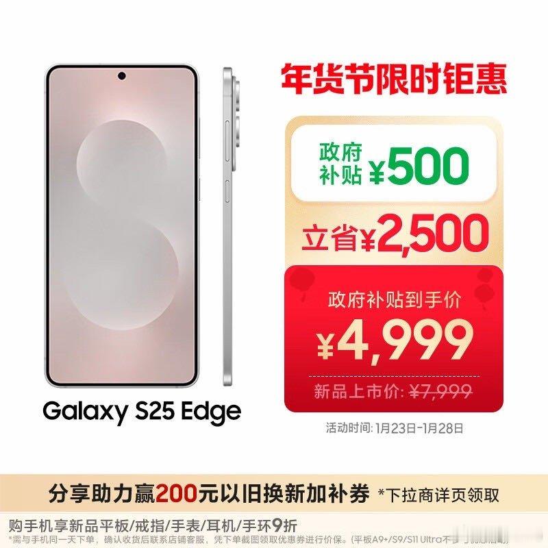 三星Galaxy S25 Edge也宣布官降2000+500! 三星Samsung Galaxy S25 Edge 5.8mm超薄旗舰手机 骁龙8至尊版 AI拍照手机 12GB+256GB 钛银
