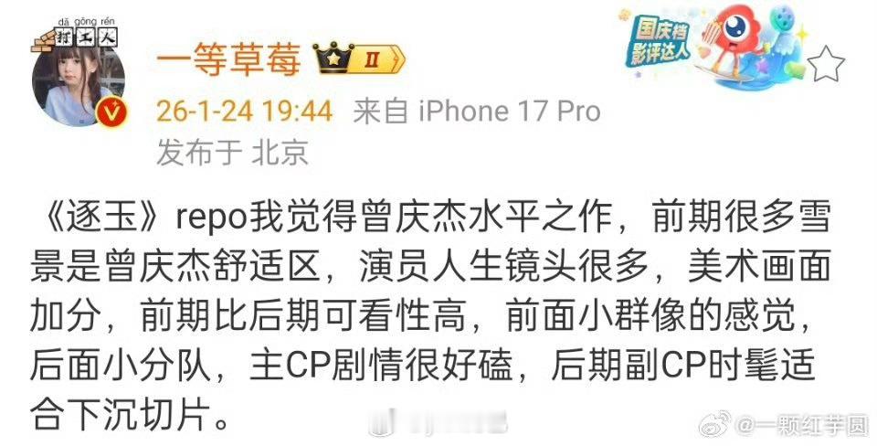 张凌赫田曦薇《逐玉》repo:演员人生镜头很多,前期小群像更好看,主cp剧情很好磕,副cp时髦适合下沉切片。
