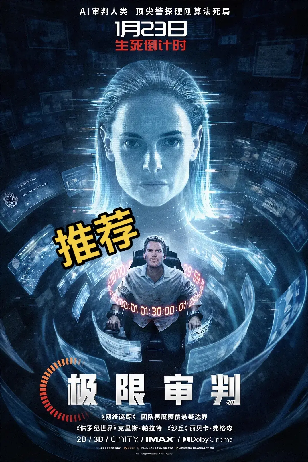 超预期,反转精彩!星爵这次被Ai玩惨了…《极限审判》是比预期好的商业片,是《网络谜踪》的升级版。影片采用了类似的“桌面电影”形式,大量监控、屏幕和第一视角画面制造出强烈的压迫感,信息铺天盖地,观众几乎和主角一起被困在系统里找真相。观影感觉非常贴合AI全面介入生活后的想象。星爵饰演的雷文在座椅上,却要经历车祸、爆炸等生死体验的桥段,既新鲜也残酷,还有多个精彩反转。
