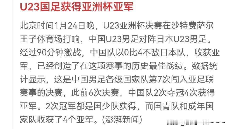 洗洗睡吧,可以了,中国队踢的可以了,正常水平都发挥出来了,0:4也是能够接受的。要不是小日本运气比较好也就搞个0:2。小伙子也都拼尽全力了,回来好好总结吧,在一些细节上再提高一下。以后比赛还多的是,等下一次再碰到日本的的时候比这次踢得好不就可以了吗?恭喜u23国足获得亚洲杯亚军。