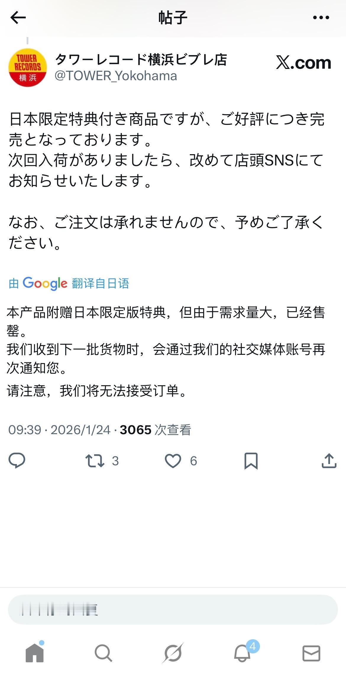 贺鑫隆日本限定特典专第一个售罄(图源日本塔店横滨店官博),只限线下购买不支持预定的最新日本限定特典刚上鑫隆就没有库存了,成为队内第一个售罄的成员,日本人气实感🔥