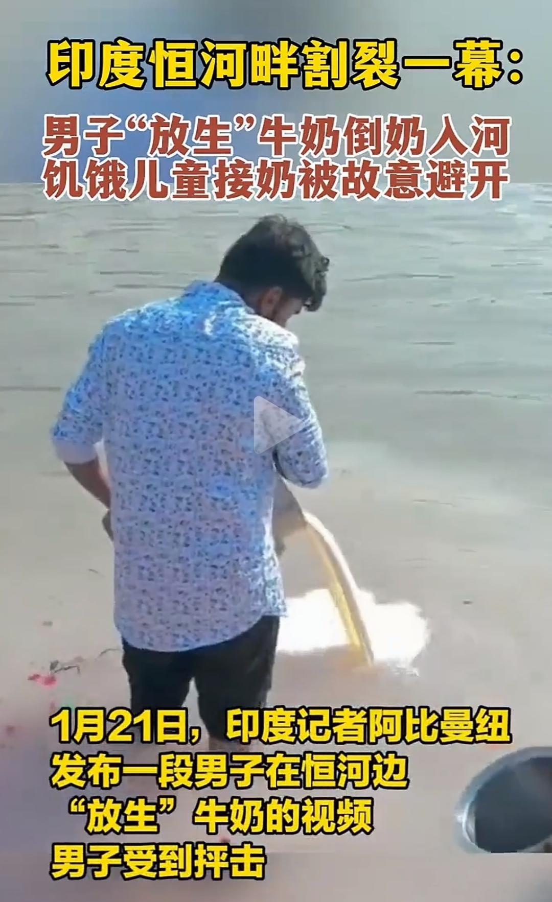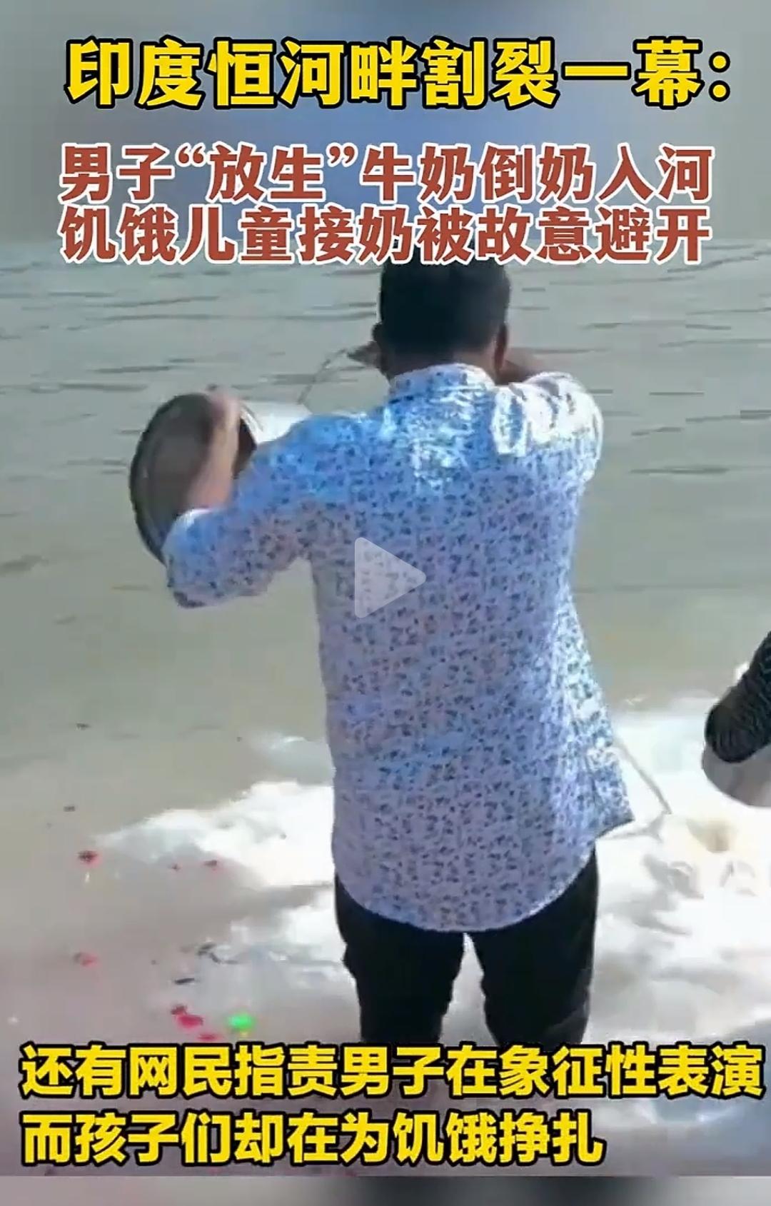 我就说嘛,我们有些人放生大米、放生自来水这些奇葩操作是哪里来的,原来是这里来的。 印度有人放生牛奶,以后会不会有人放生空气? 放生积德,但是对饥饿的儿童视若无睹,他积的是什么德?这就是这些人的伪善和荒谬之处。 点右上角关注我,我们一起去看这个魔幻的世界