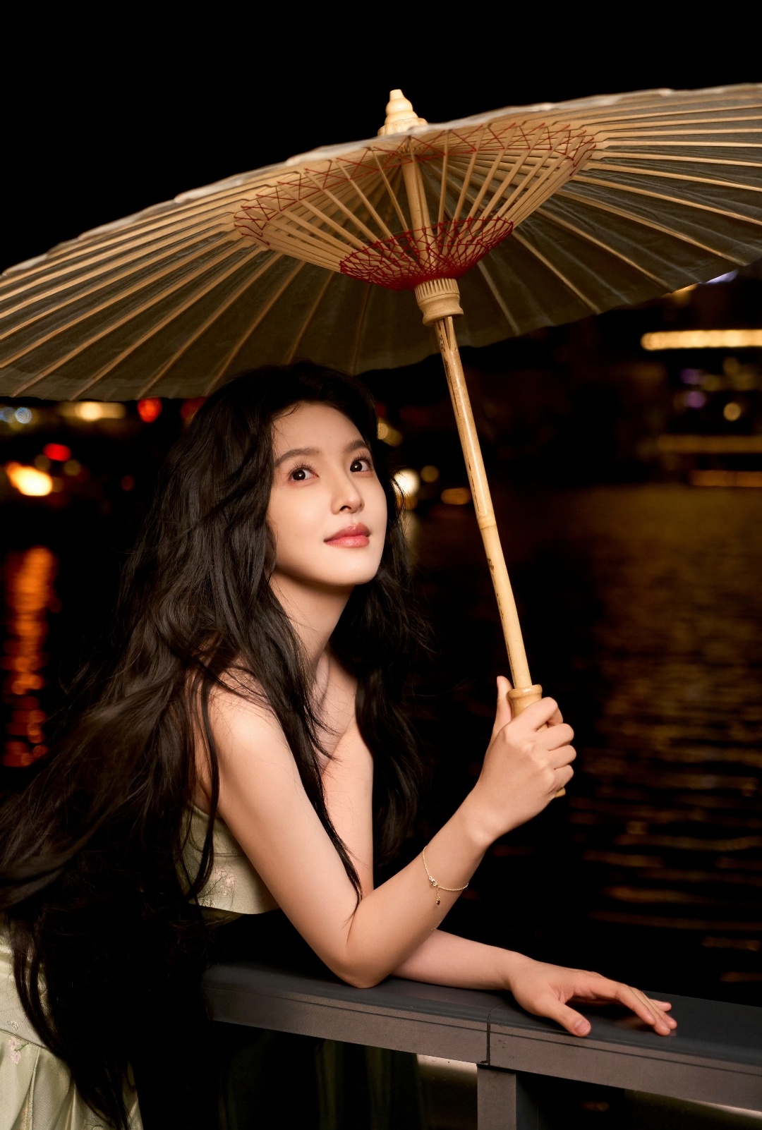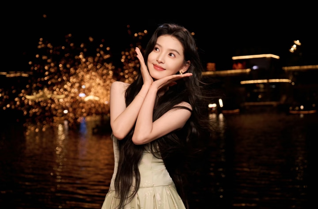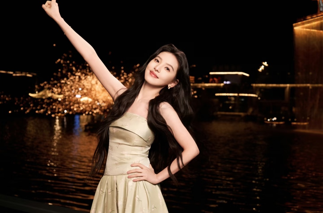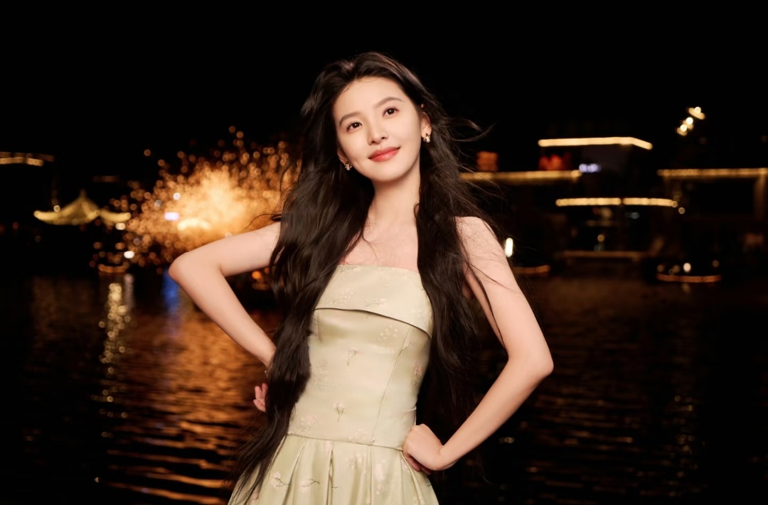刘浩存甜美穿搭写真:瞻碧轻漪漾,酿绿影春光。刘浩存