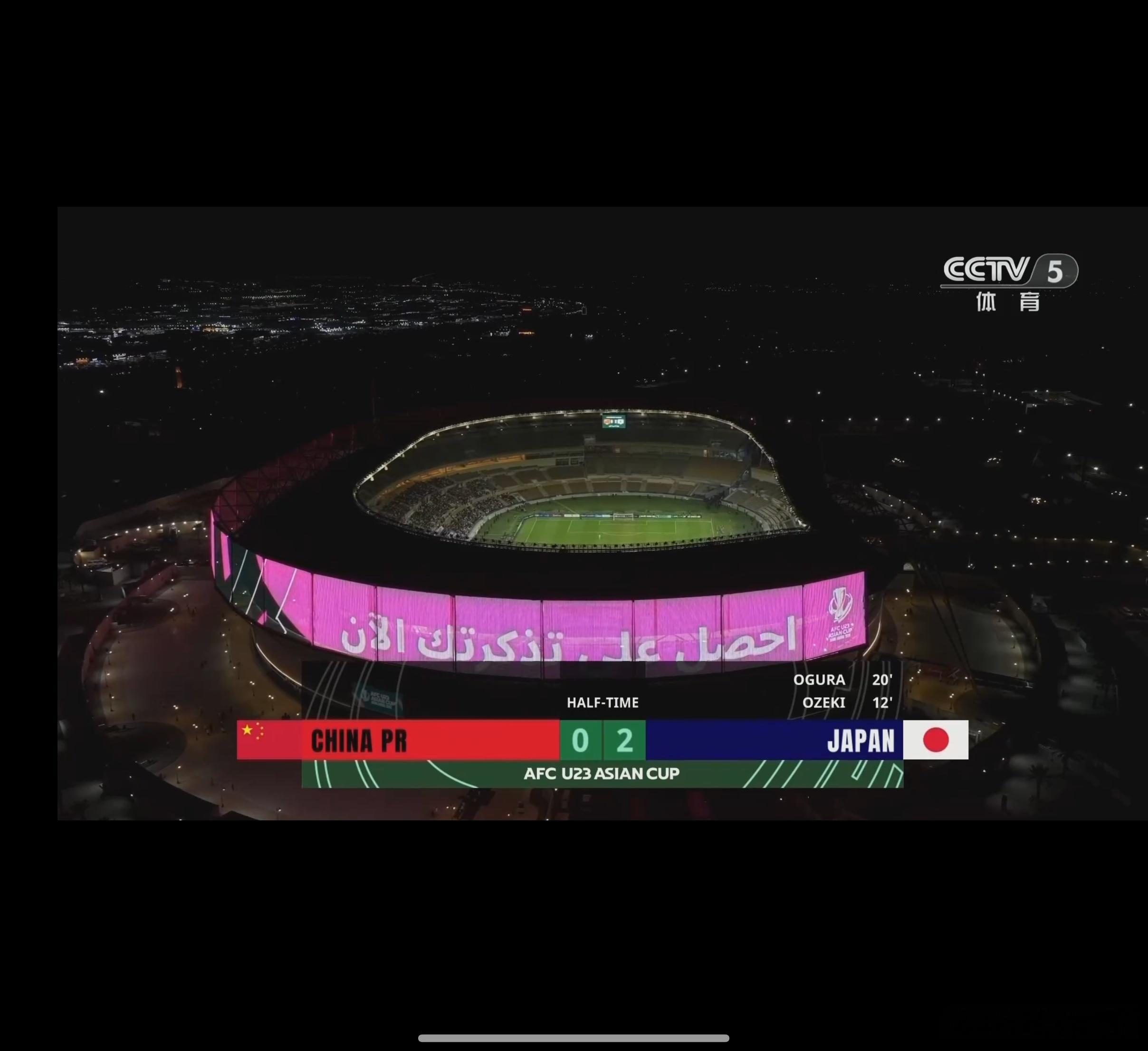 U23国足vs日本上半场结束,咱们暂时落后2个球,下班班发生奇迹,追平就行,然后点球大战!