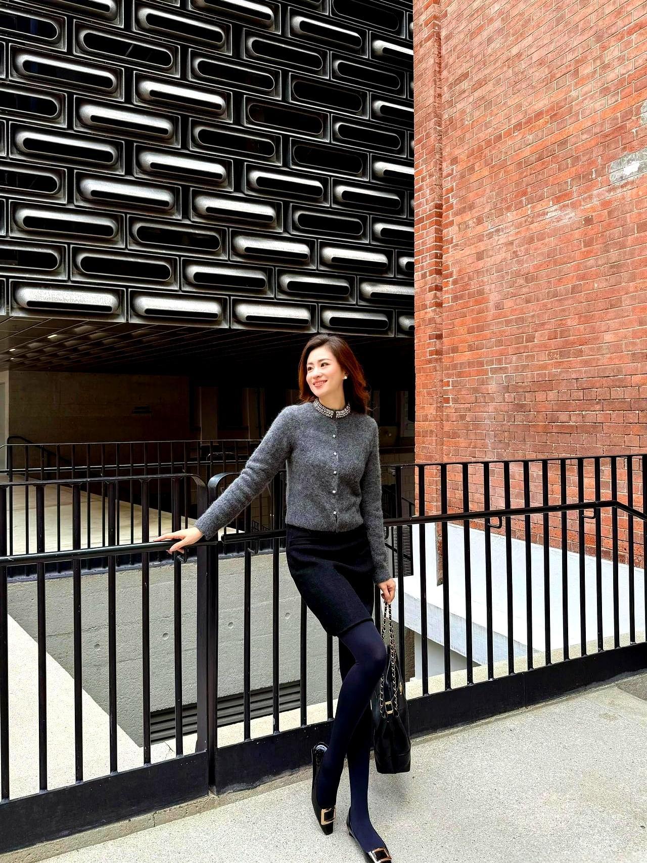 灰针织+黑半裙,看着低调,其实全是算计。珍珠往领口一钉,立马把温柔抬成轻奢。金属扣单鞋和链条包,像给整身装了个“我很贵”的提示音。灰黑不出错,细节全在闪,通勤约会都能穿,拍照自带滤镜。2026还在流行这口,想再新鲜,就塞点灰绿或淡粉当调味,别太猛,点到为止就行。