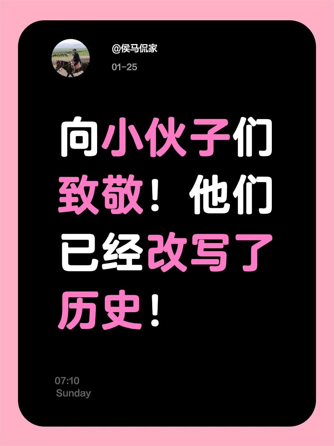 我评论了@侯马侃家 的作品:向小伙子们致敬!他们已经改写了历史!