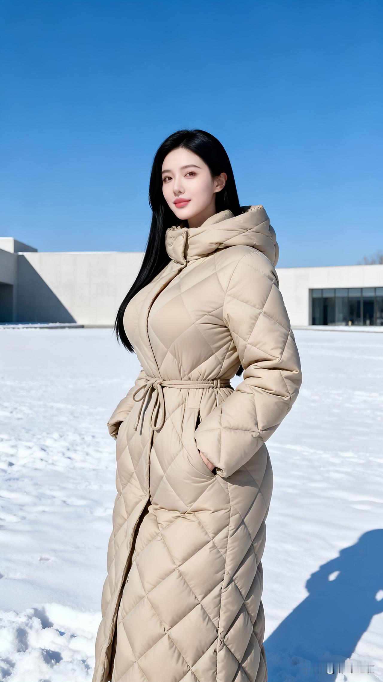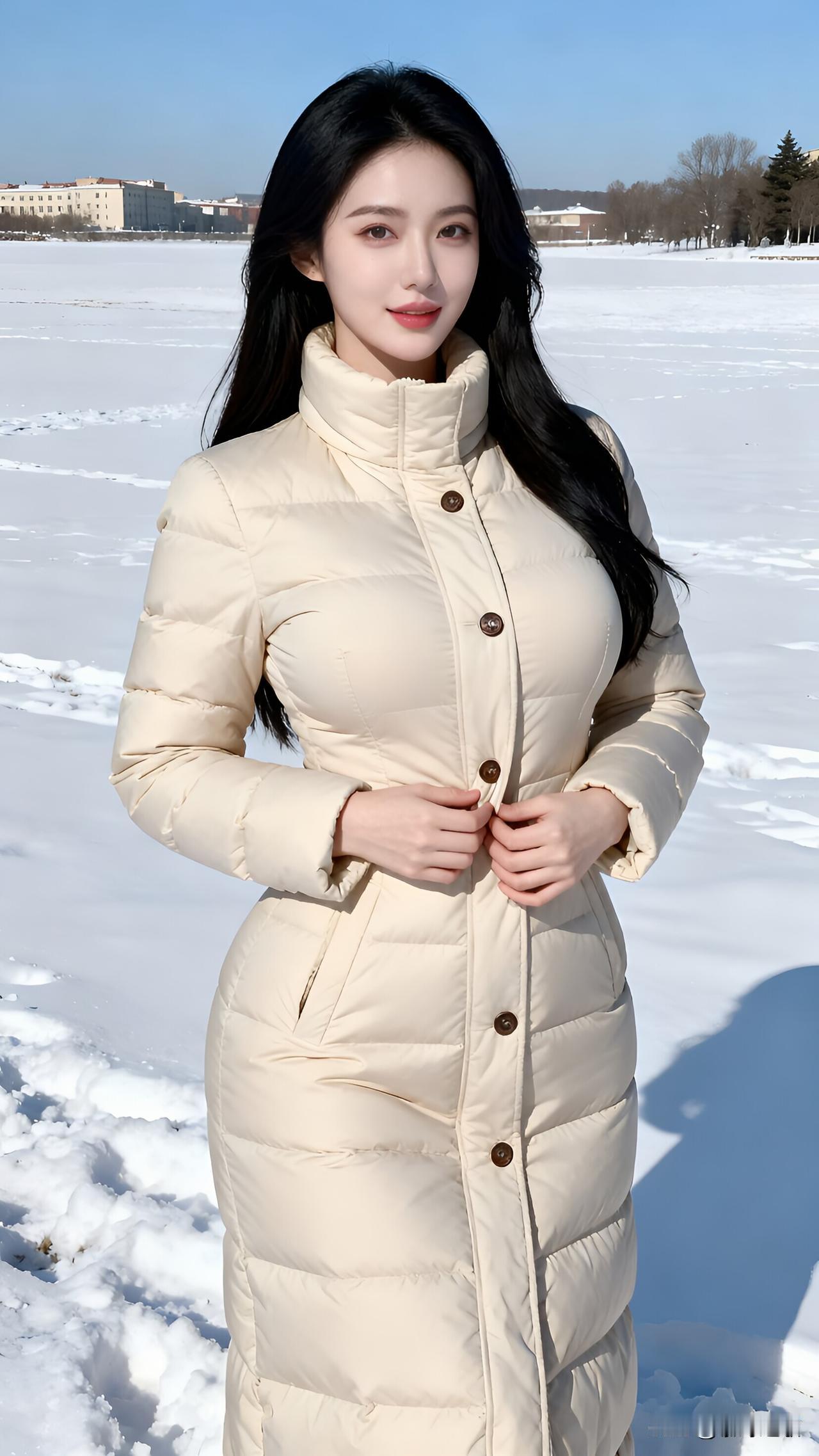 雪地里的奶白羽绒服,这冬日氛围感直接拉满❄️ 在银装素裹的冰封湖面上,这位冷白皮美女身着奶白色长款修身羽绒服,将冬日的保暖与时尚完美融合。柔和的米白色调与皑皑白雪相映成趣,修身剪裁在蓬松感中依然勾勒出流畅的腰臀曲线,黑长直发垂落肩头,增添了几分温柔气质。 她轻拢领口、侧身而立的姿态松弛又自然,冷调瓷白的肌肤在晴朗蓝天与雪地的映衬下更显清透,一抹红唇成为冬日里的点睛亮色。随手抓拍的日常快照风格,没有刻意构图却精准捕捉到了自然氛围感,仿佛将冬日的浪漫与松弛感定格在镜头里。 冬日穿搭 羽绒服穿搭 雪地随拍 冷白皮美女