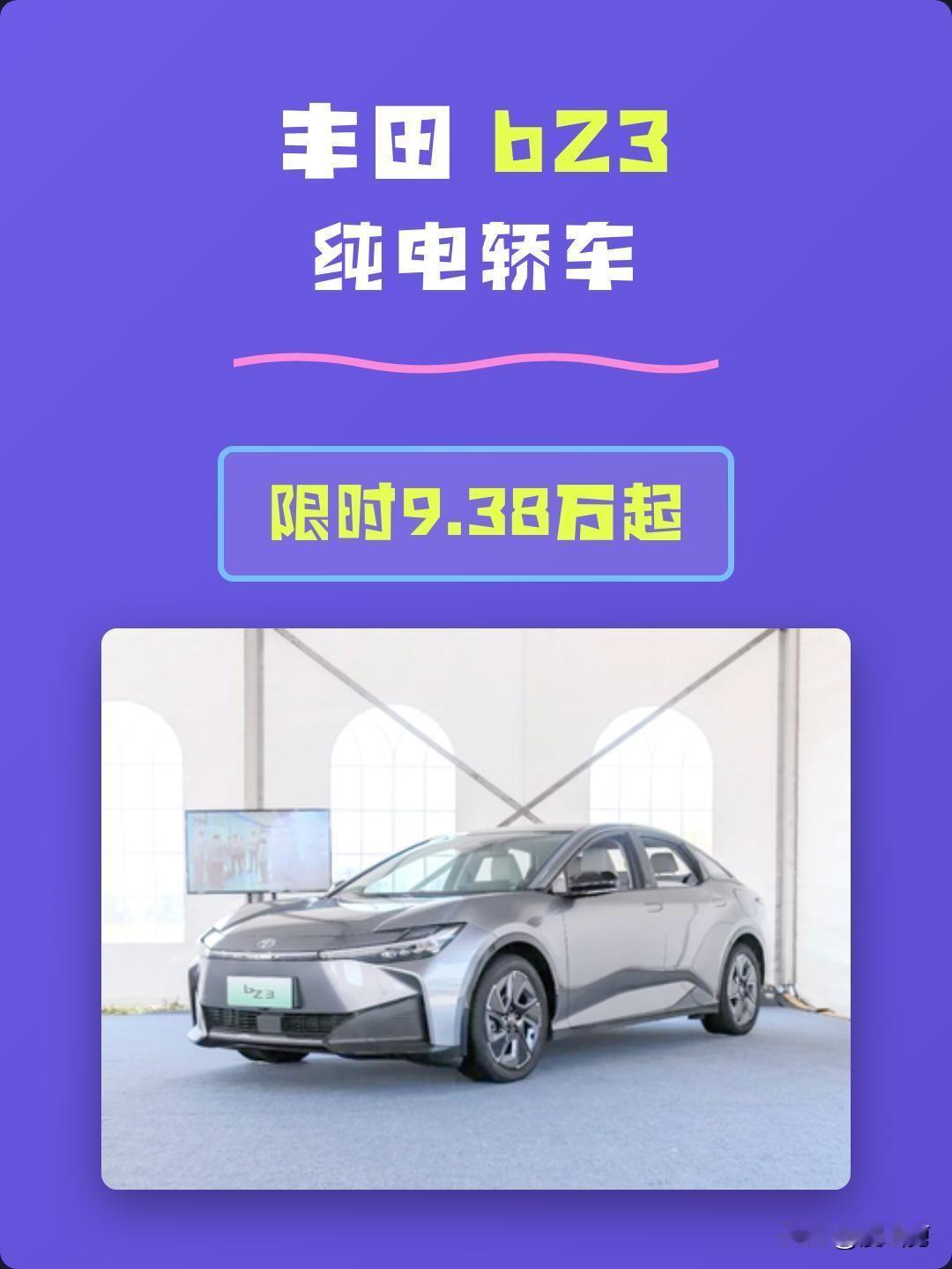 有人说,2026年买车,不选纯电车型你会后悔? 难怪我同事开了几年油车,突然换了纯电车。他说,省钱是最主要的体感变化,从每月3000多元的油费变成了现在不到1000元的电费,甚至还可以在节假日随便带着家人来趟说走就走的自驾游。 再一个令同事称心的是开着安静得没话说,平地起步很难感觉到抖动感。这台车的直线加速能力相当震撼——虽然它开得不快——但起步踩电门的快感,完全超越了他之前的那辆燃油车。还有,之前总听说新能源车的高科技配置,现在终于展现在眼前,握在自己手中,这感觉真够爽的! 这辆被我同事狂吹的新能源车型就是2025年末以仅9.38万元起售的丰田bz3智享家,它把丰田的可靠性带进了10万内纯电市场,空间、续航和智能都挺能打。 它的核心亮点在于以下几方面: 价格亲民:起售价9.38万元,直接杀入10万元以内纯电轿车市场; 空间越级:轴距2880mm,比凯美瑞还长,坐在后排的跷个二郎腿也是没话说的; 续航扎实:官方超600km,实测市区郊区达成率92%;提供517km和616km两个版本; 智能安全:支持城区辅助驾驶,全系8个气囊,电池五重保护; 充电灵活:快充30%-80%仅27分钟;长续航版支持6kW外放电。 丰田bz3智享家是丰田与比亚迪技术联合打造的B级纯电轿车,定位中型家用,空间越级,续航和智能配置均衡,主打的是高质价比。 合资品质+亲民价格+扎实配置,家用纯电选它,通勤出游都安心!