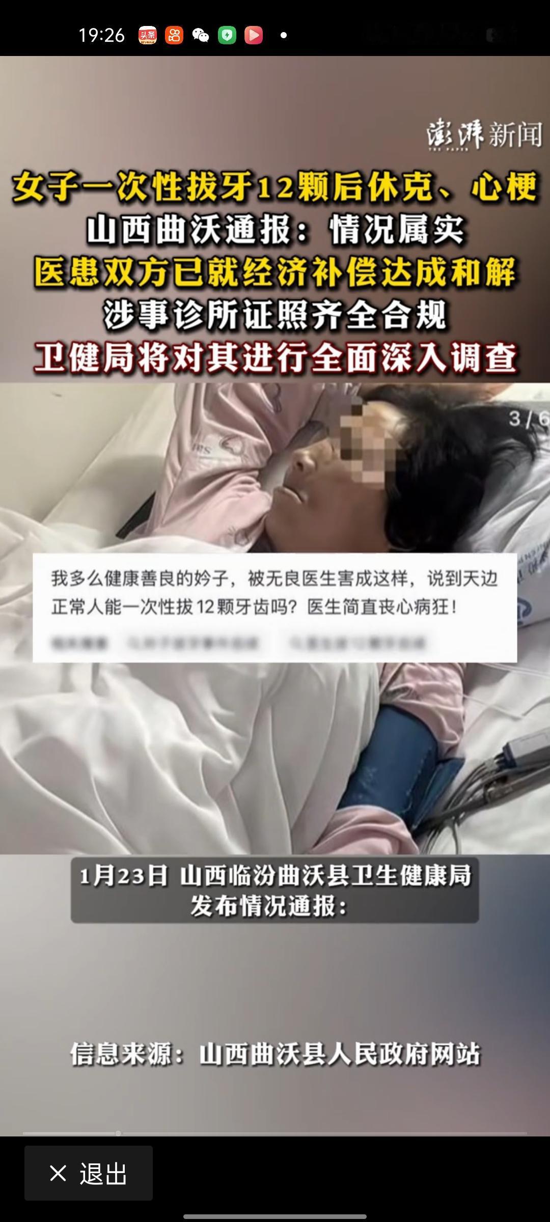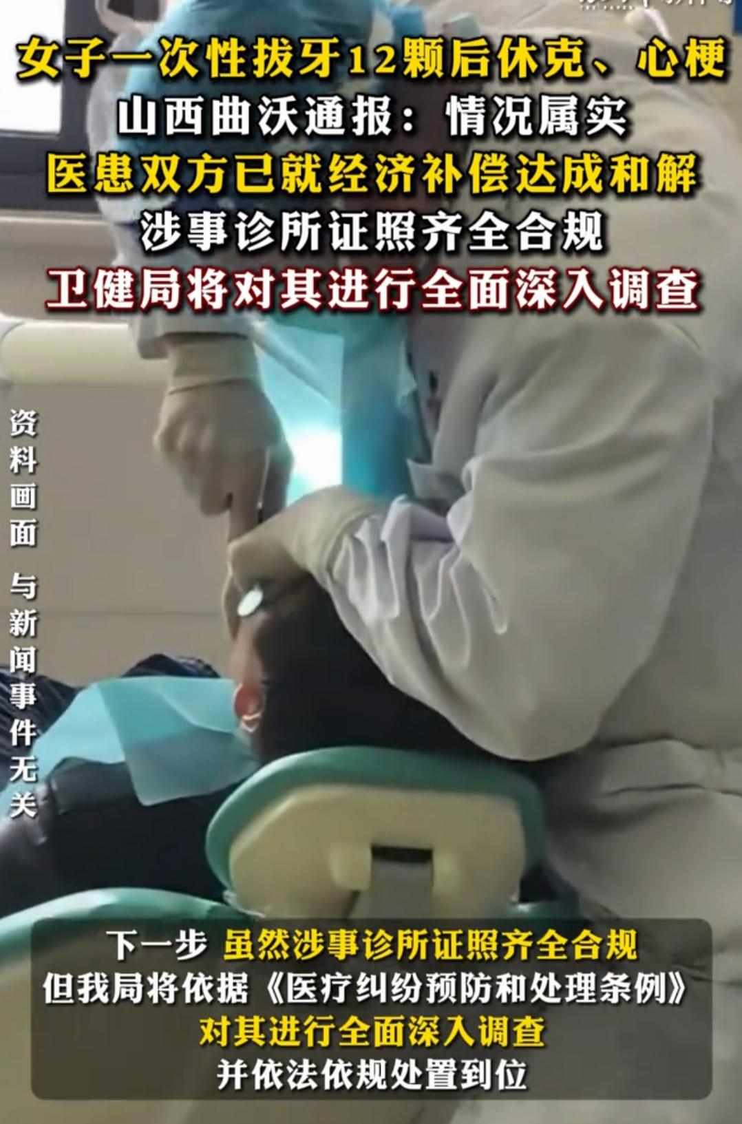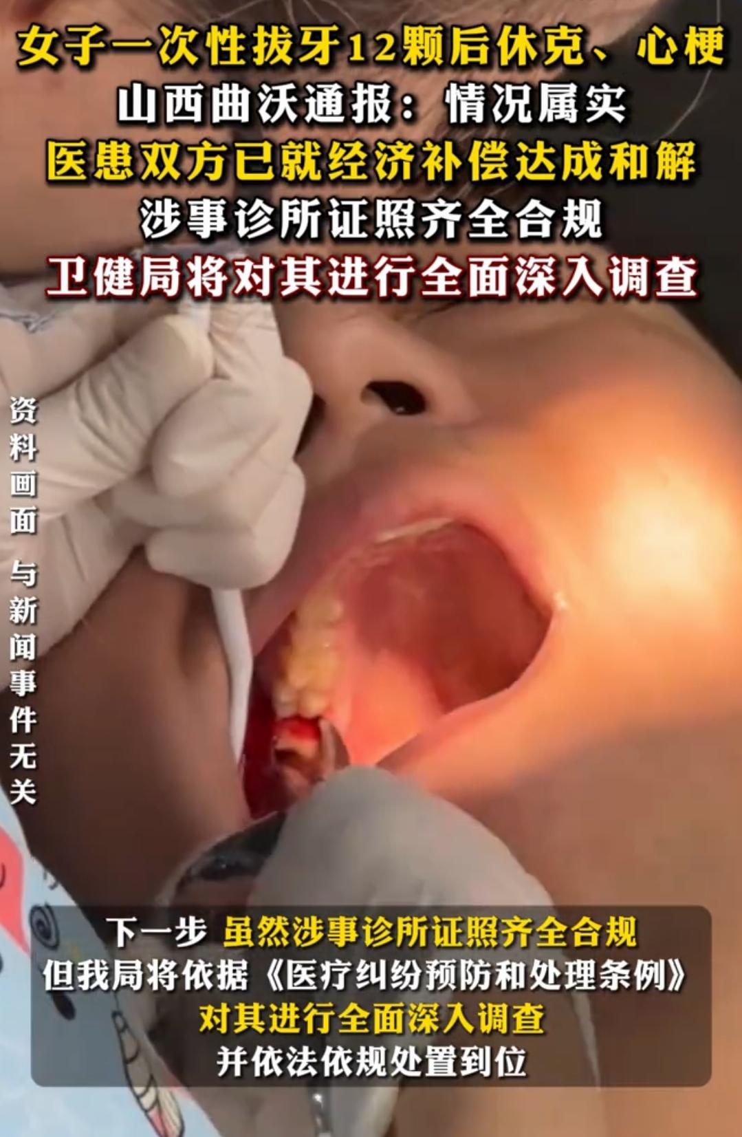 卫健局通报!女子拔12颗牙后心梗休克,术前检查正常也难逃一劫 太揪心了!山西