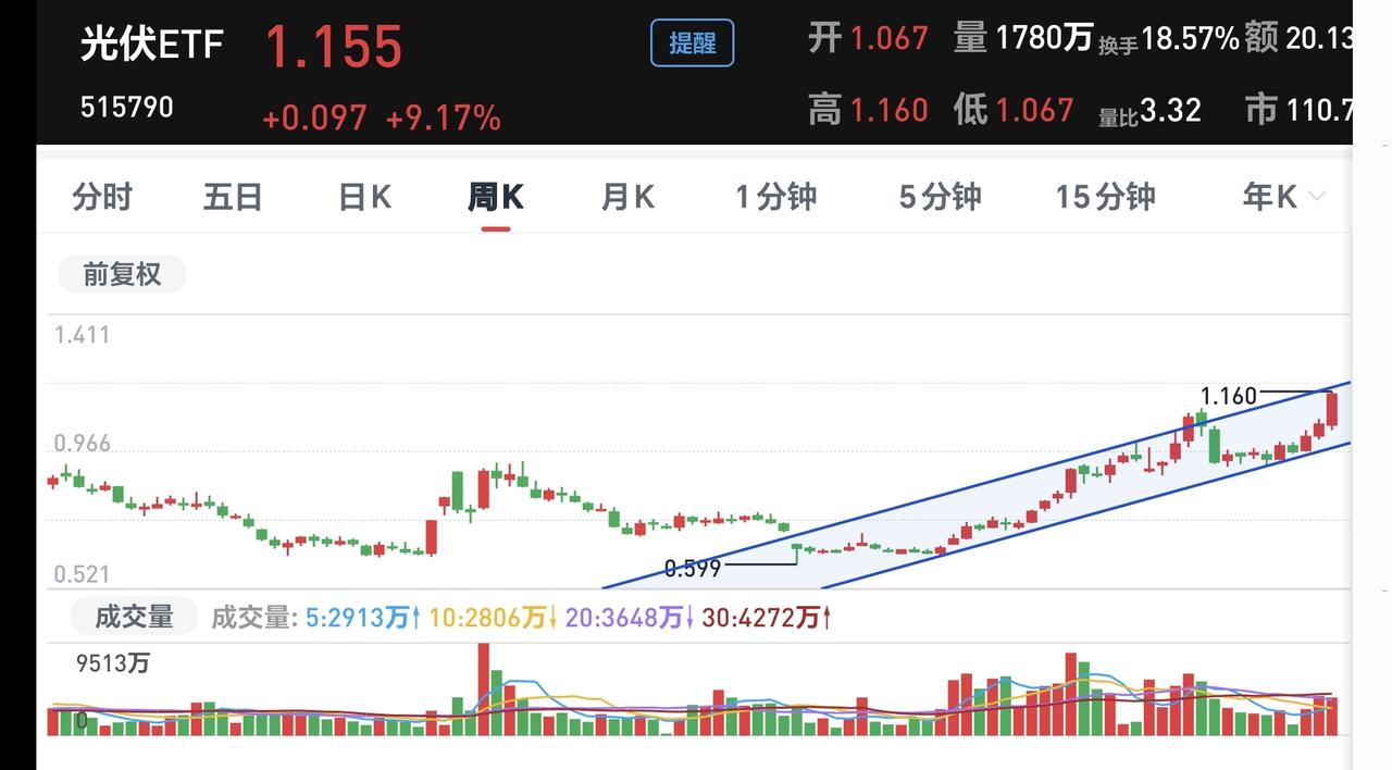 基金:光伏板块应该怎么办 光伏板块的走势跟新能源板块的走势差不多,我没有光伏板块的基金,我持有的是新能源汽车板块,新能源是一个大板块,下面包含了许多小的分支,还有许多与之走势相近的板块,我们只要持有其中一个就可以了,没有必要每一个都持有。 光伏板块上周五是大涨,上涨了6.34%,是连续第二个交易日上涨,持有人数在所有板块当中排名第21位,这个板块加仓排行榜见下面的截图3,持有人数排行榜见下面的截图4,加仓人数最多的是华夏中证光伏产业,持有人数最多的是天弘中证光伏产业。 看下面的截图5,这是光伏板块日K线图,上周五的上涨突破了这个上涨通道的上轨线, 这样的情况之下,持有的人可以继续持有,如果想追涨,就没有这个必要,短线的进场点是上涨通道下轨线附近,现在已经错失了最佳的进场时间。 看下面的截图6,这是光伏板块周K线图,现在的位置处于这个上涨通道当中,距离上涨通道的上轨线很近,这个位置是考虑要不要止盈出来观望的地方,并不是考虑要不要进场的地方,周线级别上涨通道下轨线附近,才是考虑要不要进场的地方,但如果你是长期持有,可以把周线级别上涨通道下轨线作为持有条件,只要在这条线之上,就可以继续持有。 许多人没有持有条件,见到上涨了,到处追问要不要进场,见到下跌了,到处打听要不要离场,他根本不知道很多的涨跌就是无效波动,那些没有改变市场趋势的涨跌就是无效波动,对于这些无效波动,完全可以忽略不计,如果你纠结于每一天的涨和跌,那你的基金就会玩的很累,如果你能够忽视这些无效的波动,那你的基金就会玩的很轻松。 大家帮忙评论点赞,转发和分享,谢谢大家的支持。