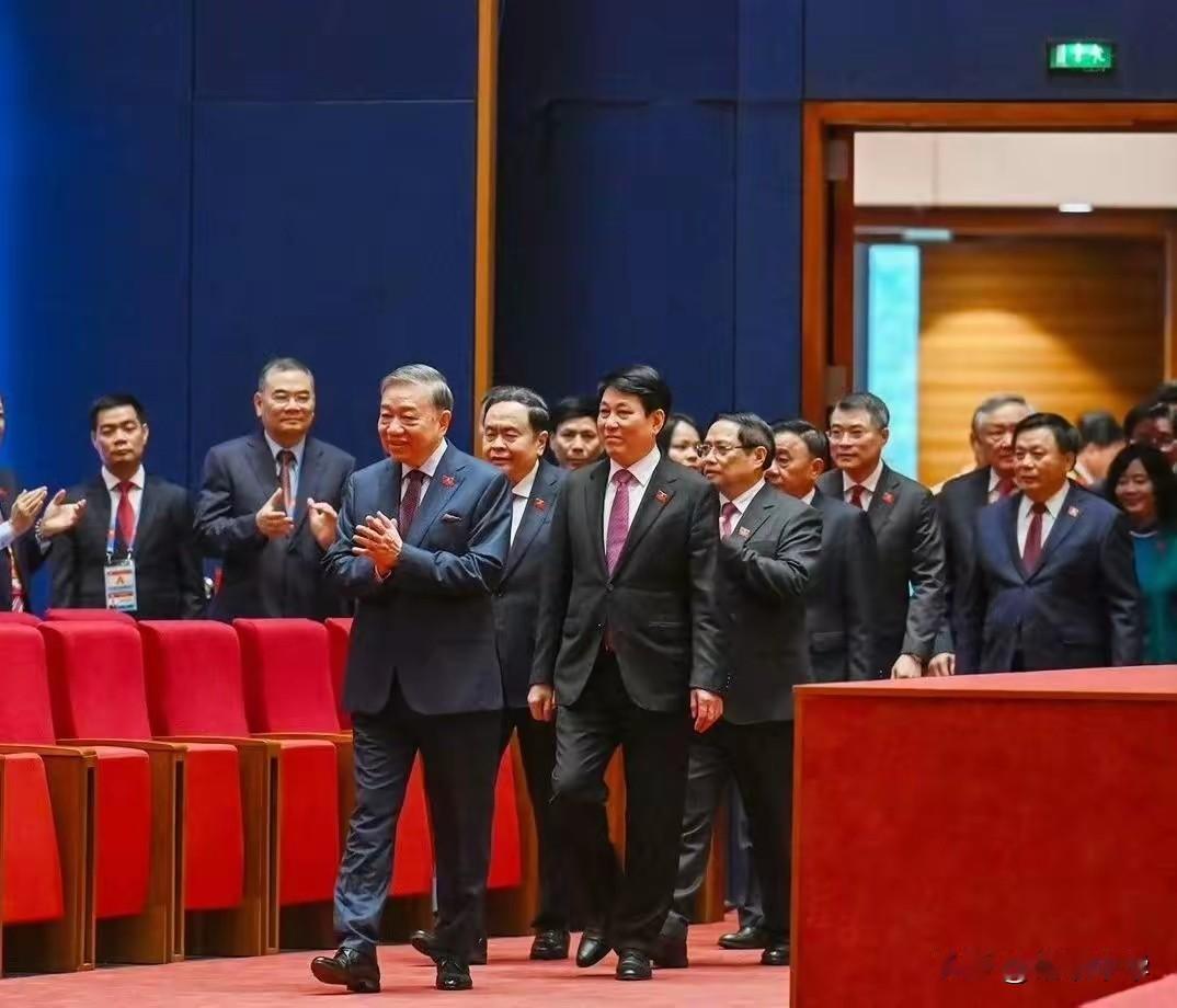 新老交替的政治走位,苏林独自一人领先而走,梁强和陈青敏并列紧跟,范明正、陈锦绣、梁明兴前后而走,梁强和范明政退出后这样的走位估计看不到了。