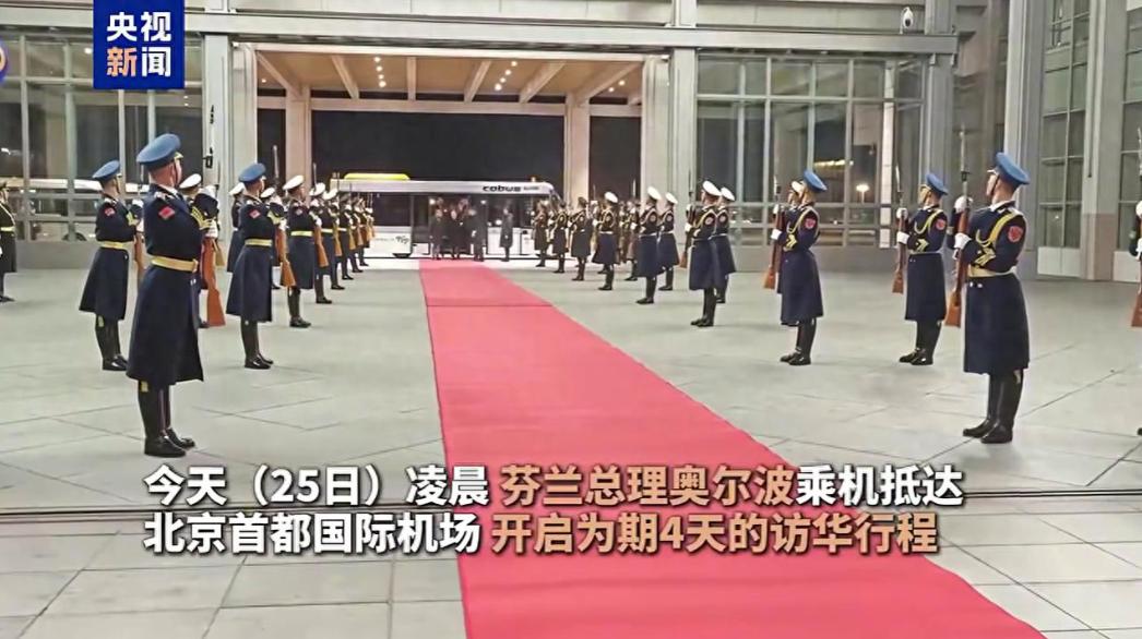 1月25日芬兰总理抵达北京,红毯一直铺到专车的车门下,仪仗队列队欢迎,还有为他开车门的工作人员还穿着军装,长相帅气还给人安全感! 凌晨的北京很冷清,但迎接芬兰总理现场却充满了温暖,专车停到了室内,仪仗队也是在室内,估计是天冷的原因,接待仪式并没有在机场,而是放到了室内。 只见总理先生穿着风衣,一身正装保暖又绅士,尽管没有鲜花,但接机人员十分热情,让总理先生能感受到宾至如归的感觉!
