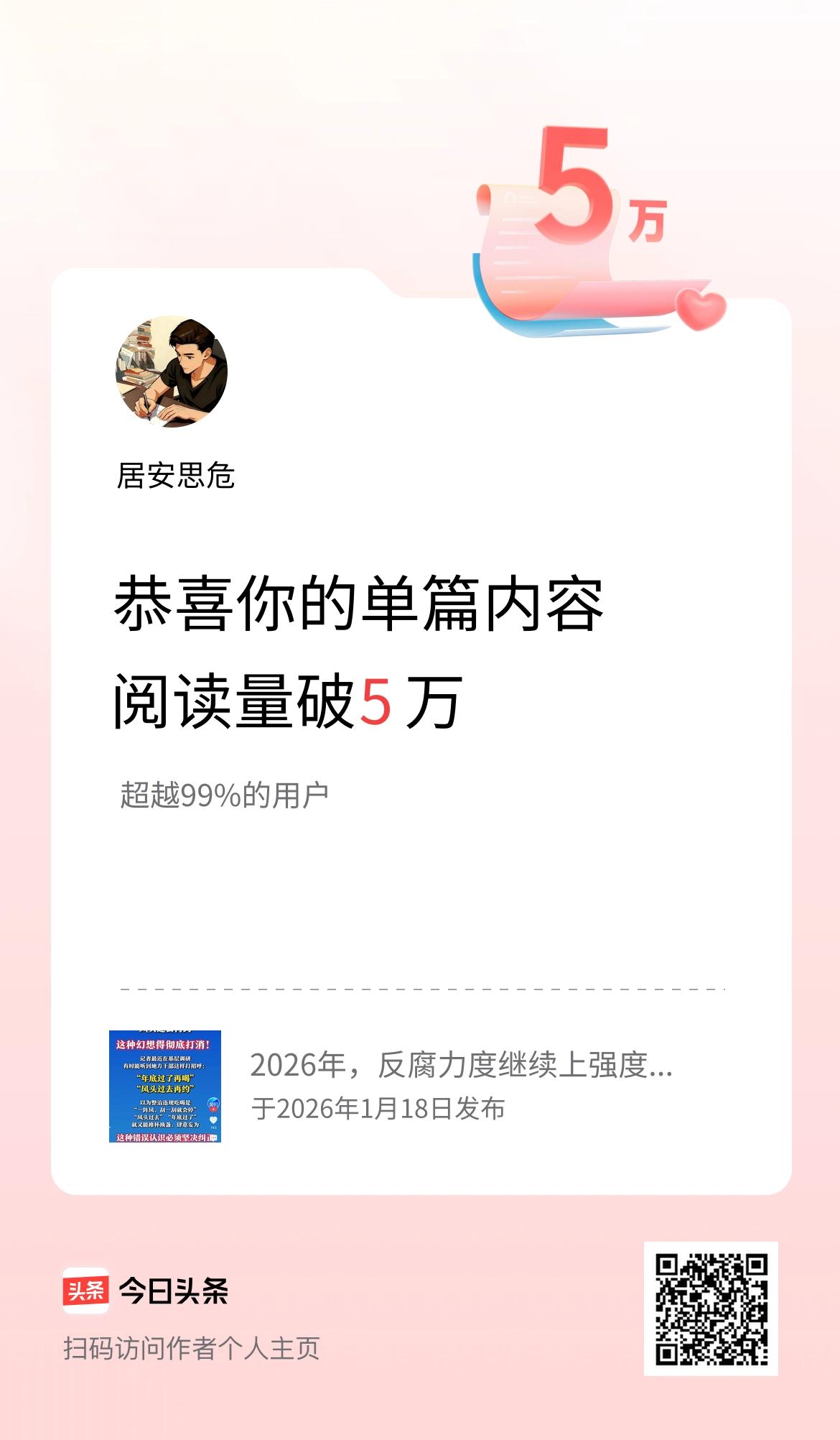 单篇内容获得阅读量破5万啦!