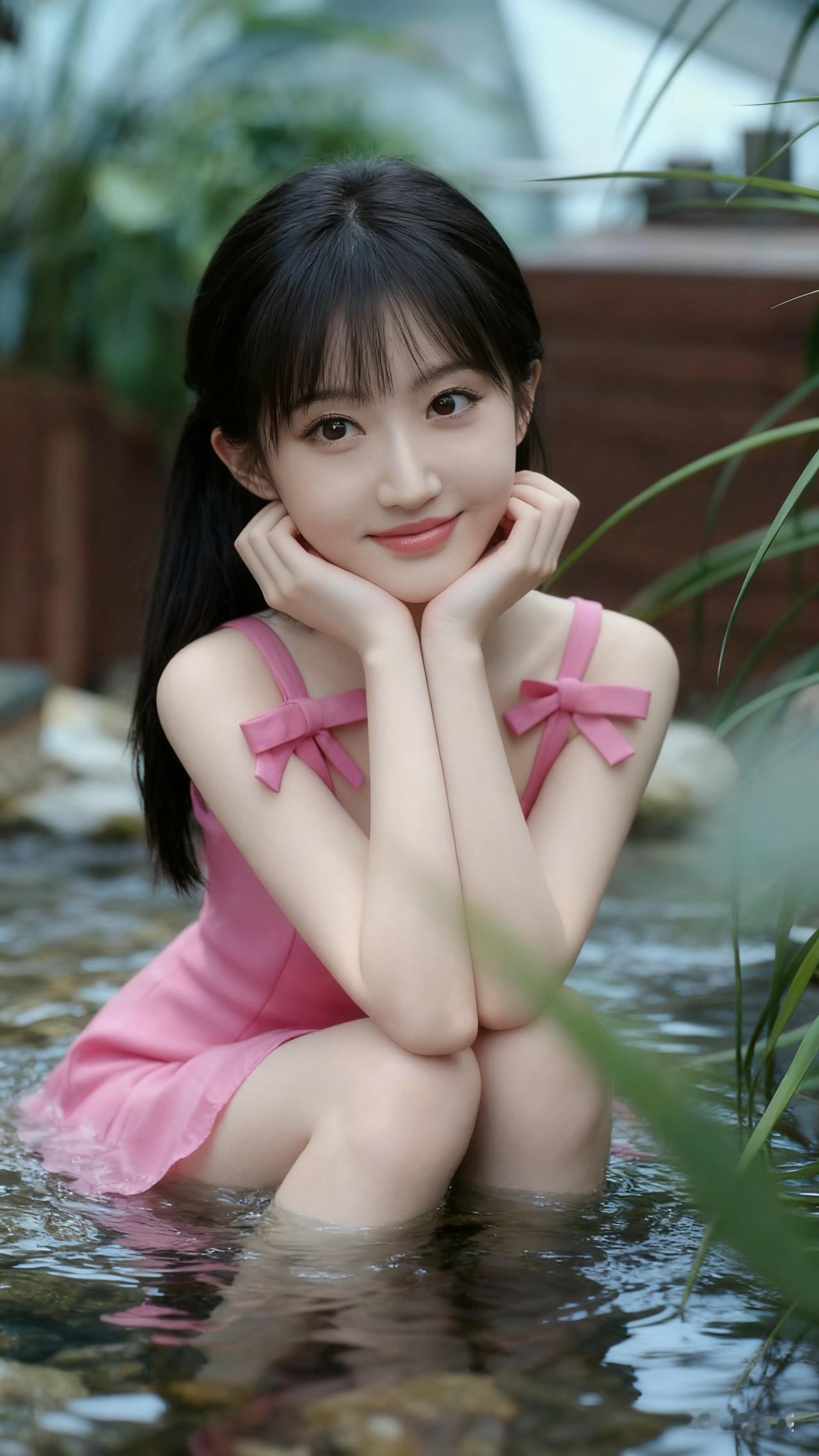 冬日暖阳下的甜美少女,粉色毛衣与围巾的完美搭配,温暖又可爱!🌞💕