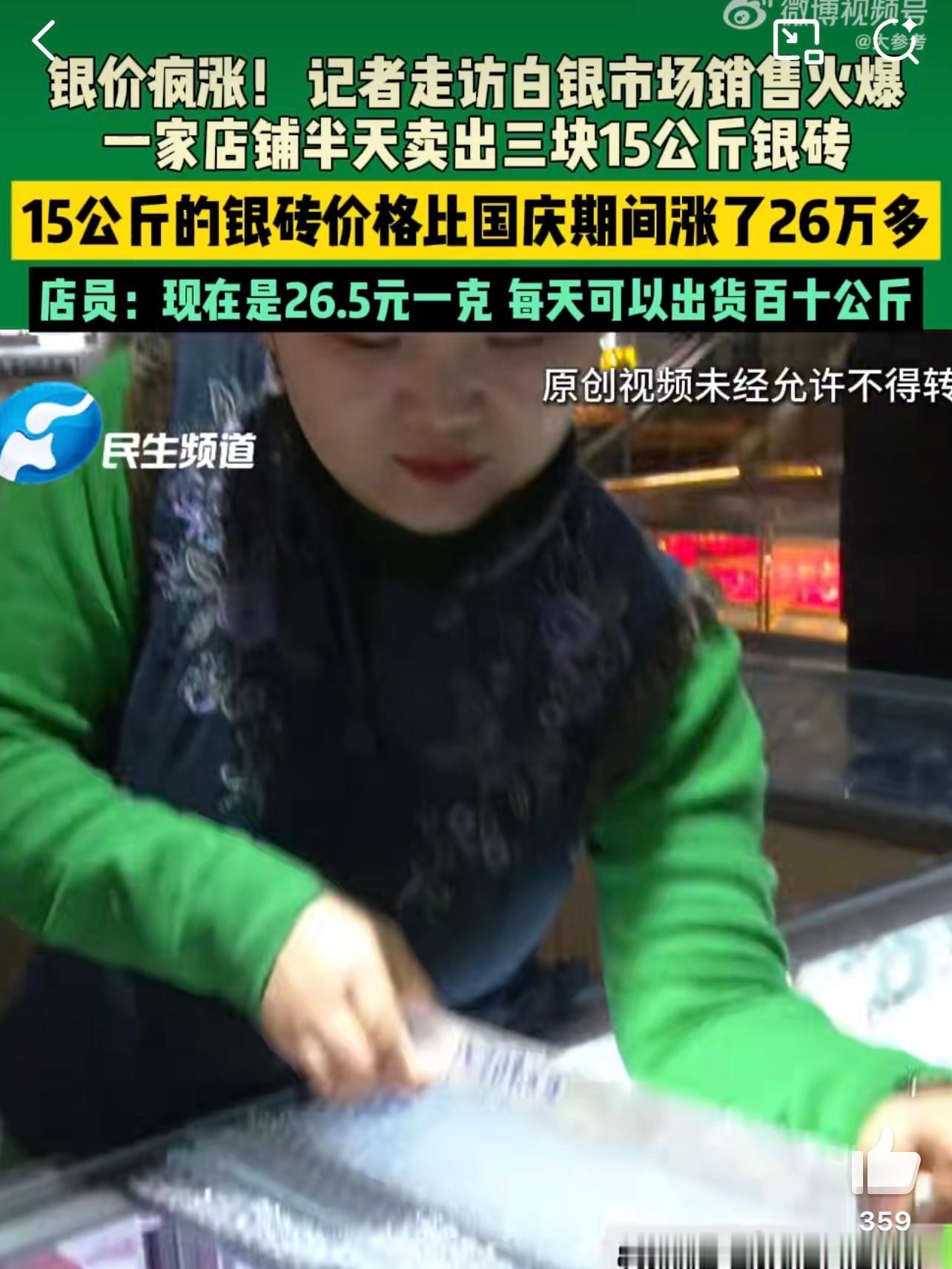 买1块银砖3个月赚26万真没招了怎么黄金涨白银跟着涨啊