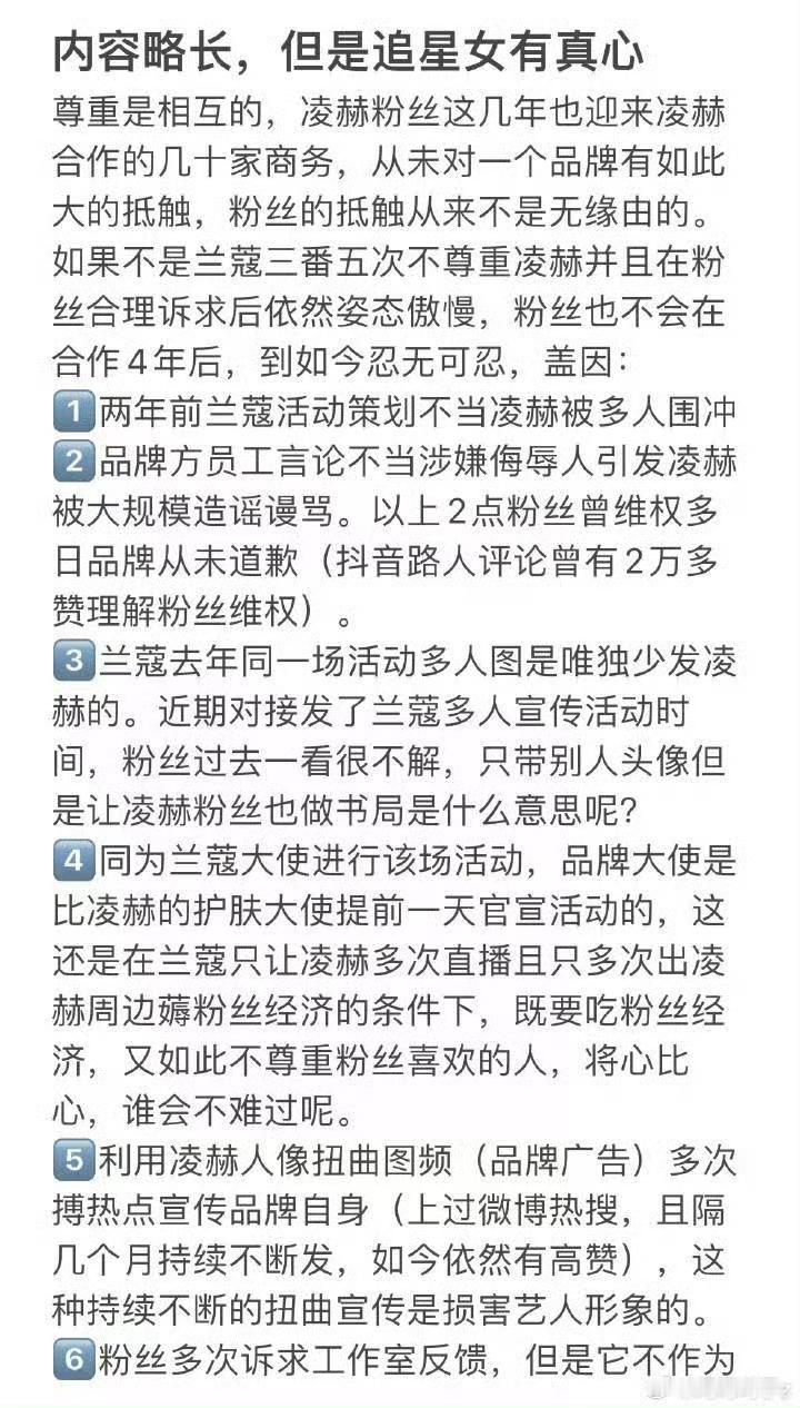 张凌赫粉丝不满兰蔻,说兰蔻烂脸,后援会出来发了商务合作期间粉圈互动规范粉丝好难啊,为了正主维权没人理,生点气还要担心影响正主