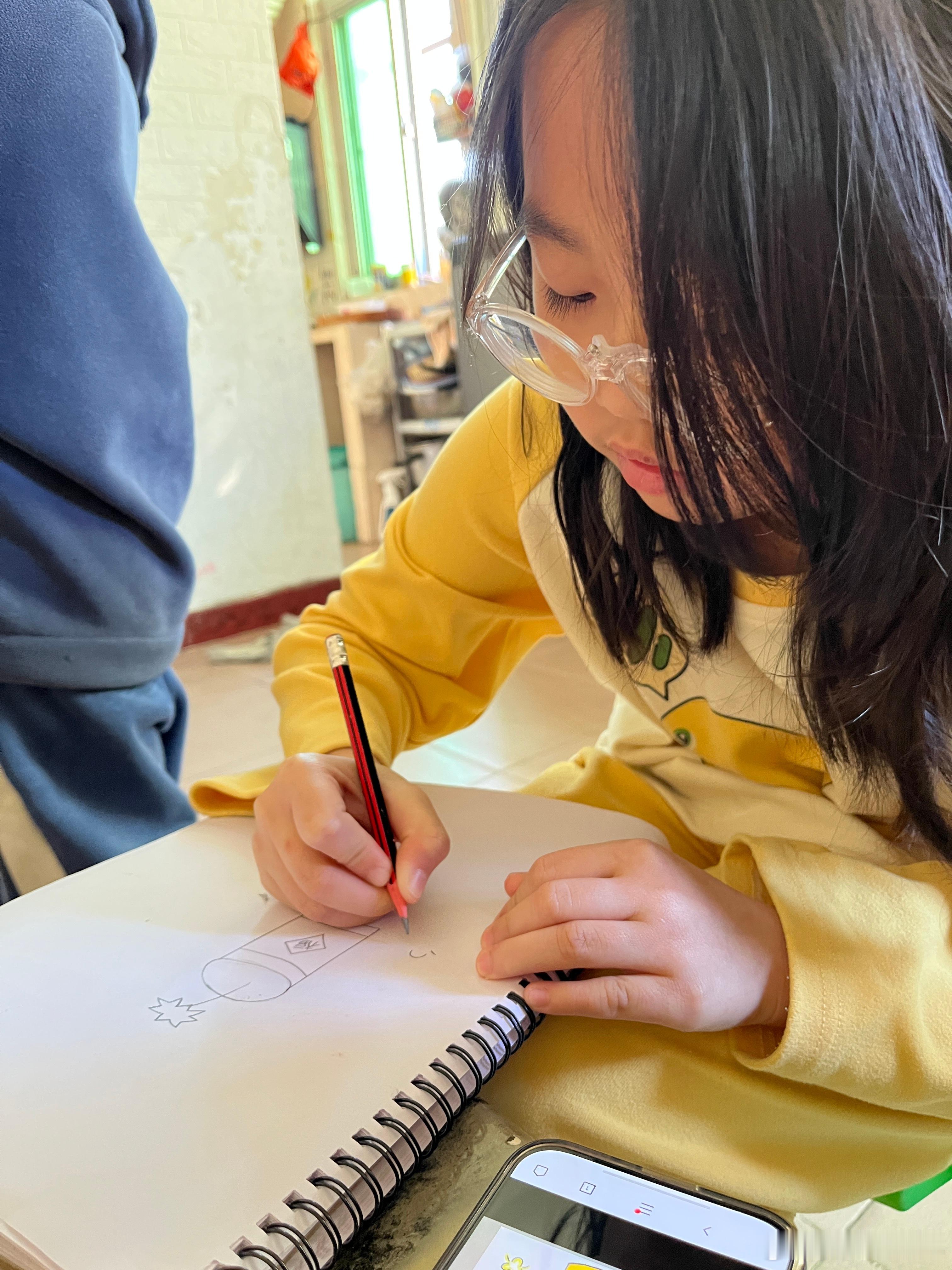 上学了,昨天的画本都忘记拿,今天又差点忘记,还好柠宝看到,自己拿来。上个周末的作