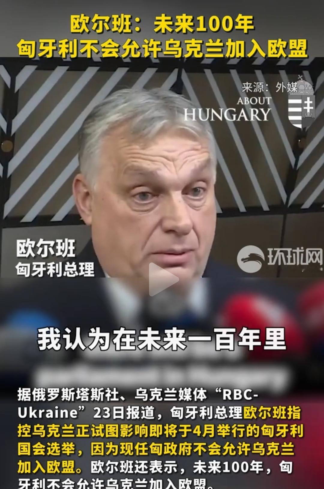 乌克兰现在加入北约没戏,可能加入欧盟也没戏了。欧盟的加入条件是要全体同意。匈牙利都放出100年都不会允许乌克兰加入的话,谁让你们自己都打成这样子了,还要想办法去干涉匈牙利国内的选举呢?这叫外部势力干涉,连最强大的美国都忌讳别国干涉他们选举,匈牙利显然也不例外。 顺便说一句,100年?欧尔班也太看得起欧盟了,欧盟能撑100年?北约也快解体了。 点右上角关注我,我们一起去看这个魔幻的世界