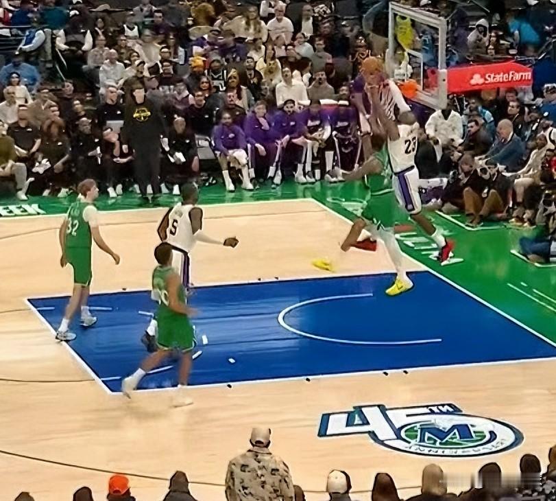 詹姆斯真是老态尽显啊!在今日湖人对阵独行侠的上半场比赛中,詹姆斯溜底线起飞想来一