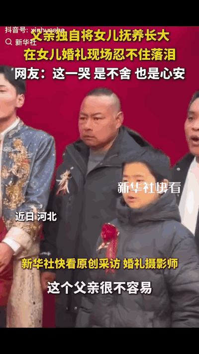 “这位爸爸火了!”近日,河北一爸爸参加女儿婚礼的合影环节时,大家都以为爸爸会笑的很开心,不料,前一秒他还在努力维持着体面,后一秒直接“破防”,五官皱成一团,毫无顾忌地嚎啕大哭!夸张又真实的表情,看哭网友!网友:“看着他眼睛都哭没有了,我就知道他多难过!” 婚礼现场满是喜庆的红,宾客们脸上都挂着祝福的笑,合影区的灯光亮得晃眼,对准这对新人还有双方父母。原本该是定格幸福的时刻,爸爸一开始还挺直着腰板,抬手整理了下西装领口,对着镜头想挤出一个欣慰的笑容,可那笑容刚浮在脸上,还没稳住就垮了下去。他下意识地抿紧嘴唇,眼眶瞬间红透,紧接着鼻头一酸,再也绷不住那点体面,五官狠狠皱在一起,眼泪像断了线的珠子往下掉,嘴巴张得大大的,哭声一点没藏着掖着,直白又汹涌,周围的人先是一愣,随后都被这突如其来的情绪感染,不少人悄悄红了眼眶。 旁边的妈妈一边轻轻拍着他的后背,一边帮他擦眼泪,自己的眼眶也红红的,新郎赶紧递上纸巾,新娘转过身看着爸爸,眼泪也止不住地流,伸手挽住爸爸的胳膊,轻轻喊了声爸。爸爸哭得上气不接下气,握着女儿的手不肯松开,那双手粗糙又温暖,明明是想好好抱抱女儿,却因为哭得太激动,胳膊都在微微发抖,嘴里说不出完整的话,只反复念叨着好好的,一定要好好的。 这一幕被现场的人拍下来发到网上,很快就火了,评论区里全是感同身受的声音。有人说自己结婚的时候,爸爸也是这样,在婚礼上强装镇定,送自己出门时,转身就抹眼泪;有人说看着这位爸爸哭到眼睛都眯成一条缝,看不见半点神采,就知道他心里有多舍不得,那是养了二十多年的小棉袄,从今往后就要去别人家过日子,那种牵挂和不舍,只有为人父母才能懂。 很多人都觉得婚礼上该是开开心心的,父母就该笑着送女儿出嫁,好像哭了就是不懂事,就是给婚礼添堵,可这种想法真的太片面了。父母对子女的爱,从来都不是单一的情绪,女儿成家是喜事,是他们盼了多年的圆满,可这份圆满里,藏着太多割舍不掉的牵挂。从女儿呱呱坠地,到牙牙学语,再到长大成人,他们牵着女儿的手走过二十多年的时光,早就习惯了把她护在身后,习惯了家里有她的欢声笑语,如今看着她穿着婚纱,挽着别人的手,要开启自己的新生活,心里既有欣慰,更多的却是舍不得,那种情绪积压在心里,到了某个瞬间就会彻底爆发,哭出来从来都不是丢人的事,反而是最真实的爱意流露。 我想起之前参加朋友的婚礼,她爸爸在致辞的时候,一开始还条理清晰,说着对新人的祝福,说着对女儿的期许,可说着说着就哽咽了,话都说不连贯,最后干脆停下来说,我没什么别的要求,就希望你以后能幸福,受了委屈就回家,爸妈永远在。说完就转过身,偷偷抹了把眼泪,那个背影看着特别落寞,却又满是温柔。其实天下的父母都一样,他们从来都不奢求子女能有多出息,只希望子女能平安喜乐,能有个靠谱的人疼她爱她,能在受了委屈的时候,有个可以依靠的港湾。 这位爸爸的嚎啕大哭,没有半点掩饰,没有丝毫做作,把一个父亲对女儿的不舍展现得淋漓尽致。比起那些强装镇定的表情,这种真实的情绪更能打动人,也让我们看到了父母爱的深沉。很多时候我们都在忙着长大,忙着工作,忙着组建自己的小家,却常常忽略了父母的感受,忽略了他们对我们的牵挂。我们总以为自己长大了,可以独当一面,却忘了在父母眼里,我们永远都是那个需要被呵护的孩子,他们永远是我们最坚实的后盾。 婚礼上的眼泪,从来都不是悲伤的代名词,而是爱意的见证,是父母对子女最真挚的祝福。这位爸爸的眼泪,哭的是二十多年的朝夕相伴,哭的是往后余生的牵挂不舍,哭的是女儿终于长大成家的欣慰。这份纯粹又深沉的父爱,不需要任何修饰,就足以打动人心,也让我们明白,父母的爱,从来都是世界上最无私、最伟大的爱,值得我们用一生去珍惜,去回报。 各位读者你们怎么看?欢迎在评论区讨论。