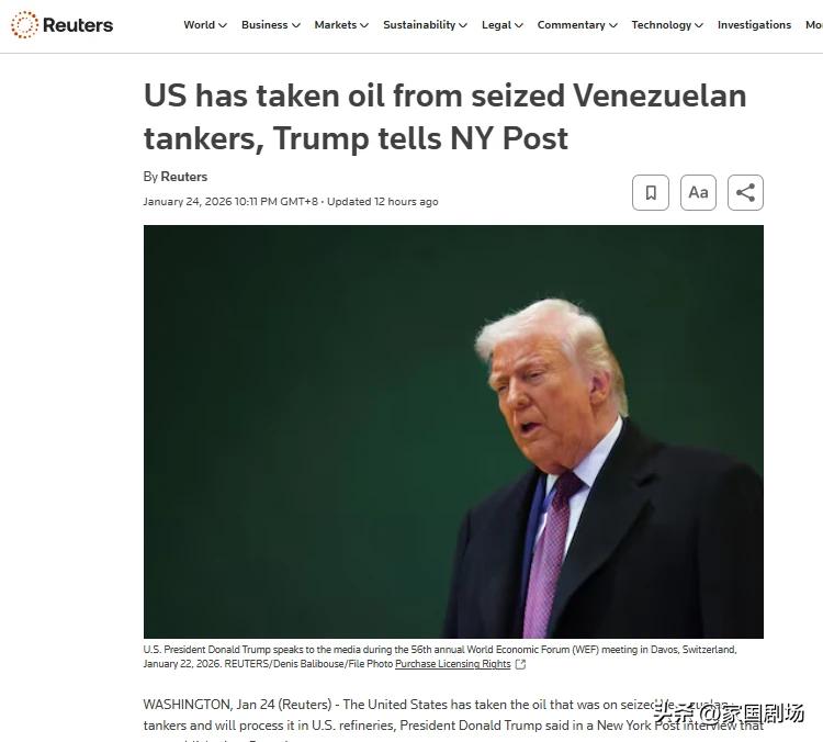 特朗普表示,美国没收了此前查获的七艘油轮上,所载的所有委内瑞拉石油,并运往休斯顿