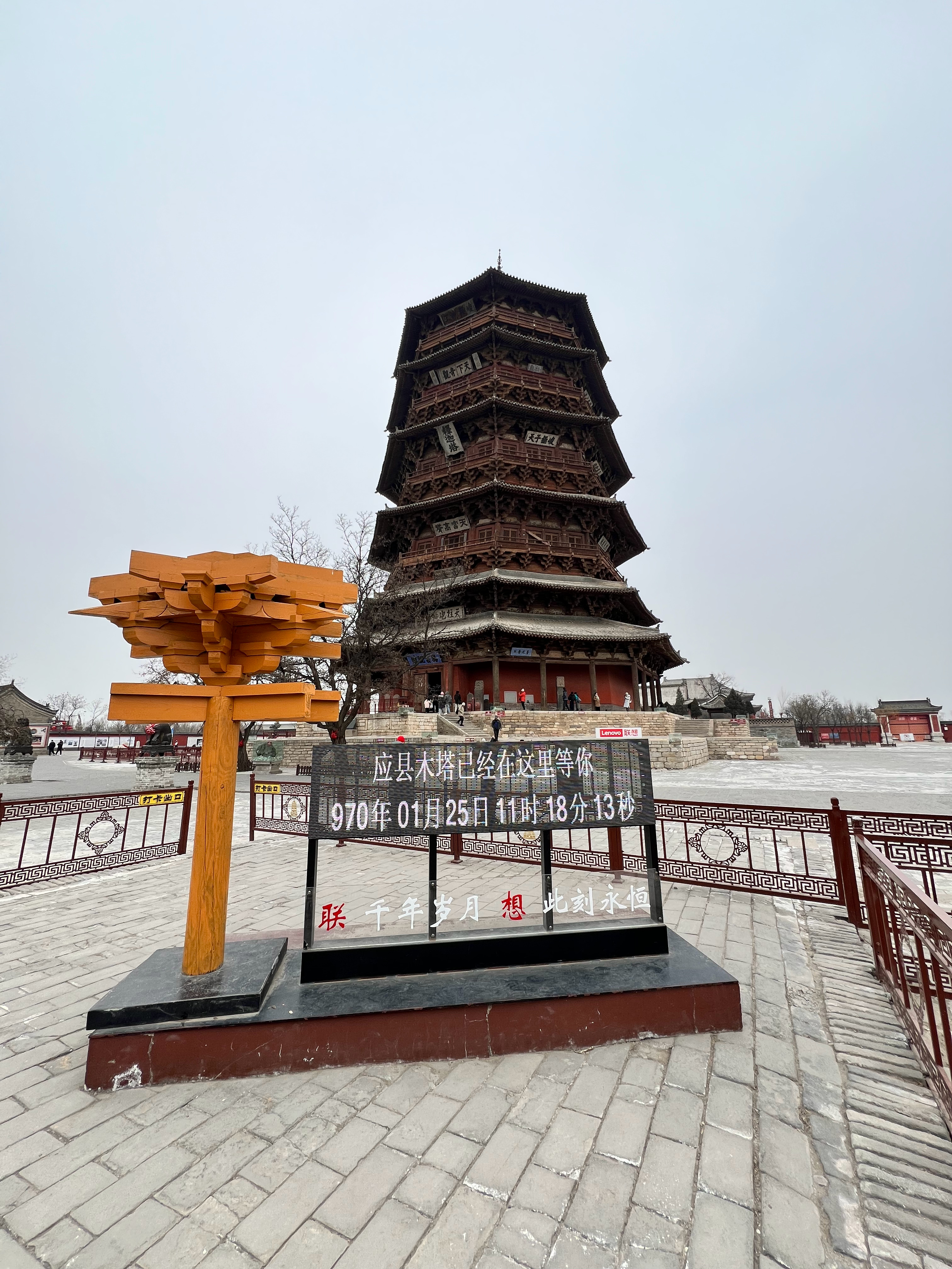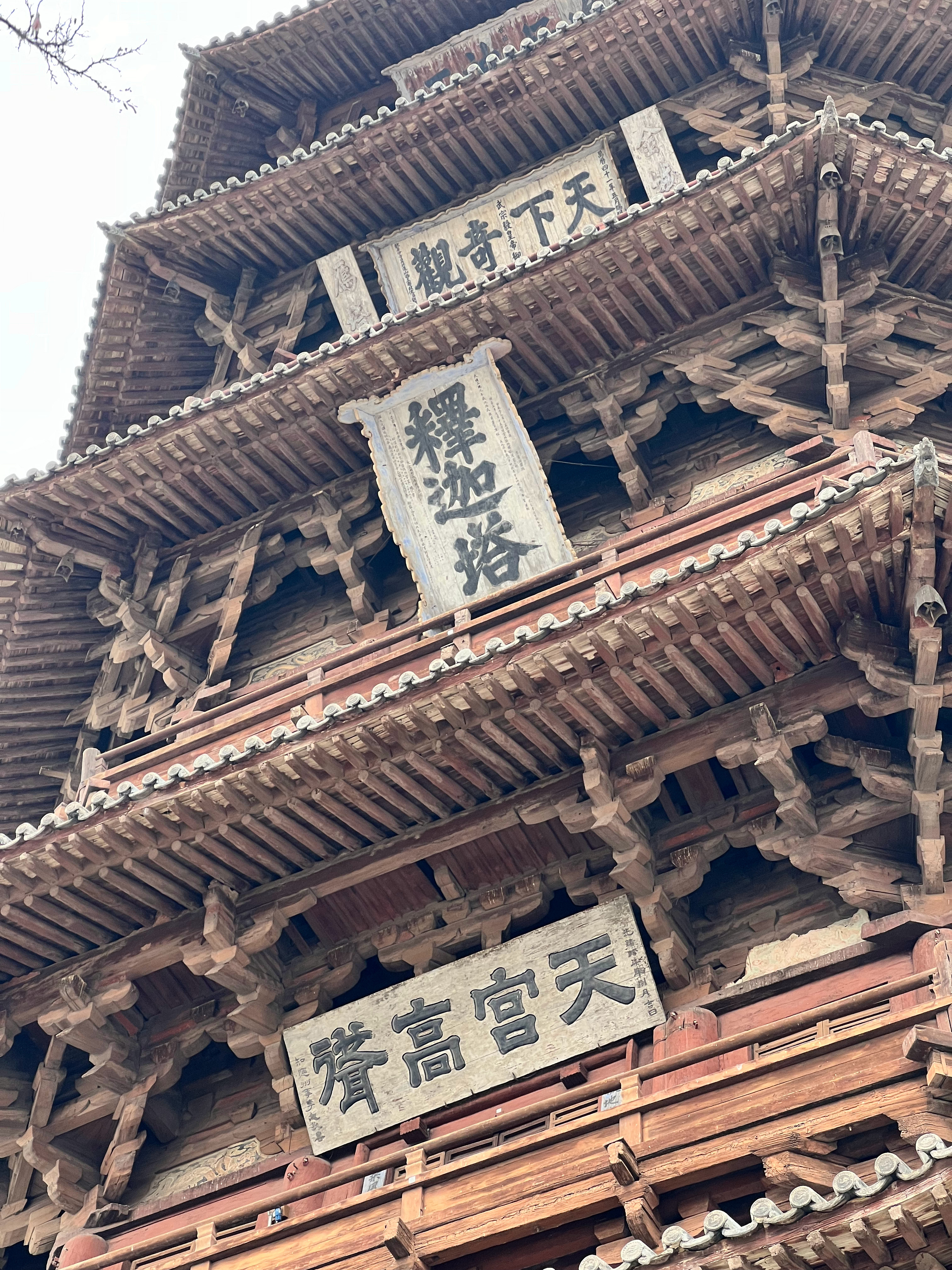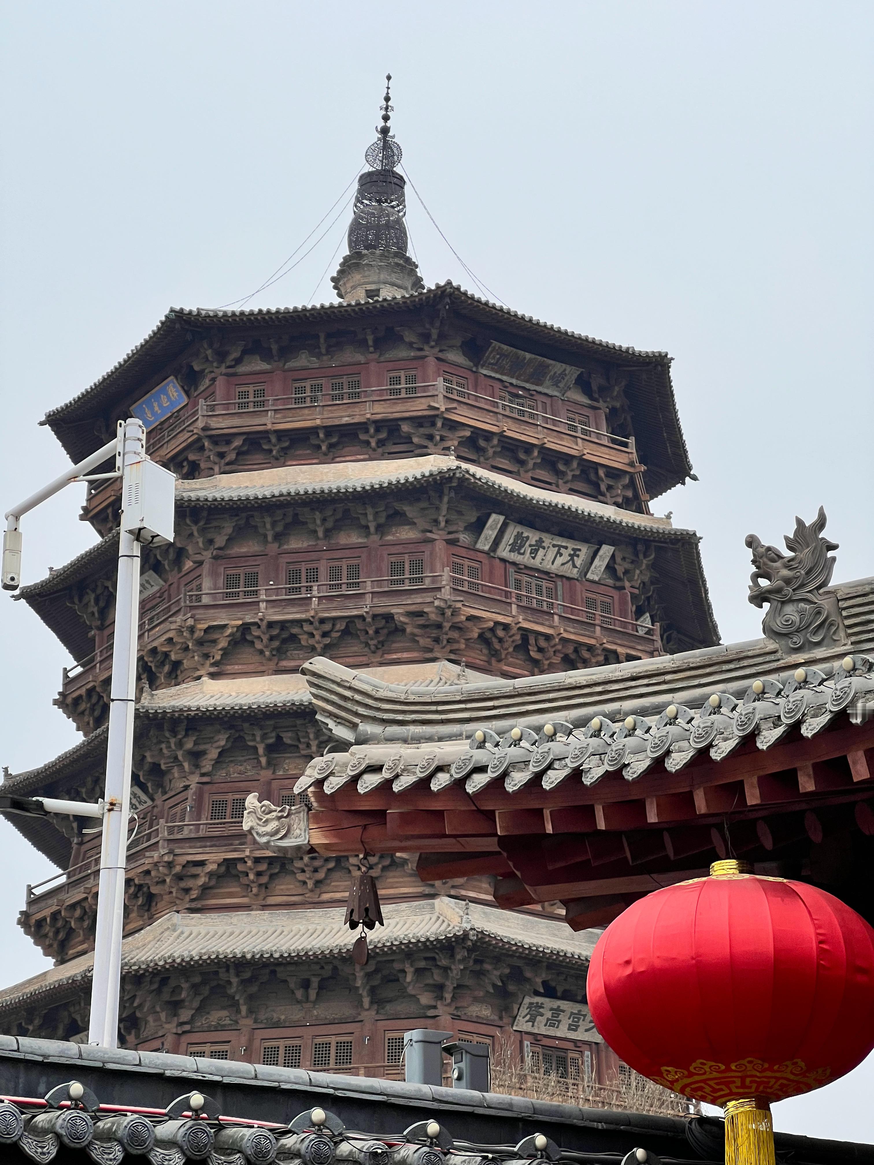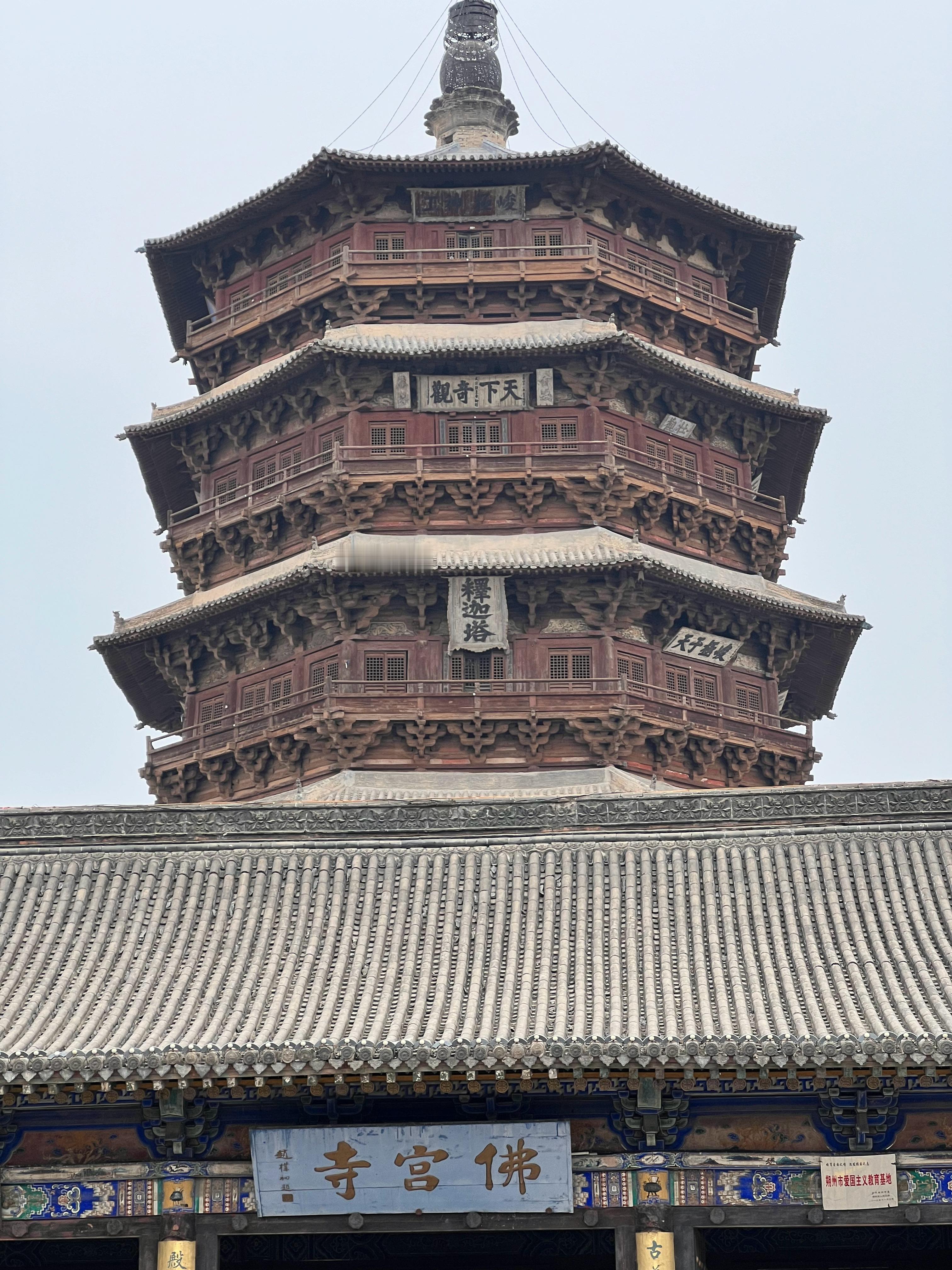 山西大同应县木塔。这座塔为纯木质结构,挺叹为观止的。已经接近千年,现在不让登塔,因为有些结构可能受损,塔已经有点歪斜。 朔州·应县木塔(佛宫寺释迦塔)