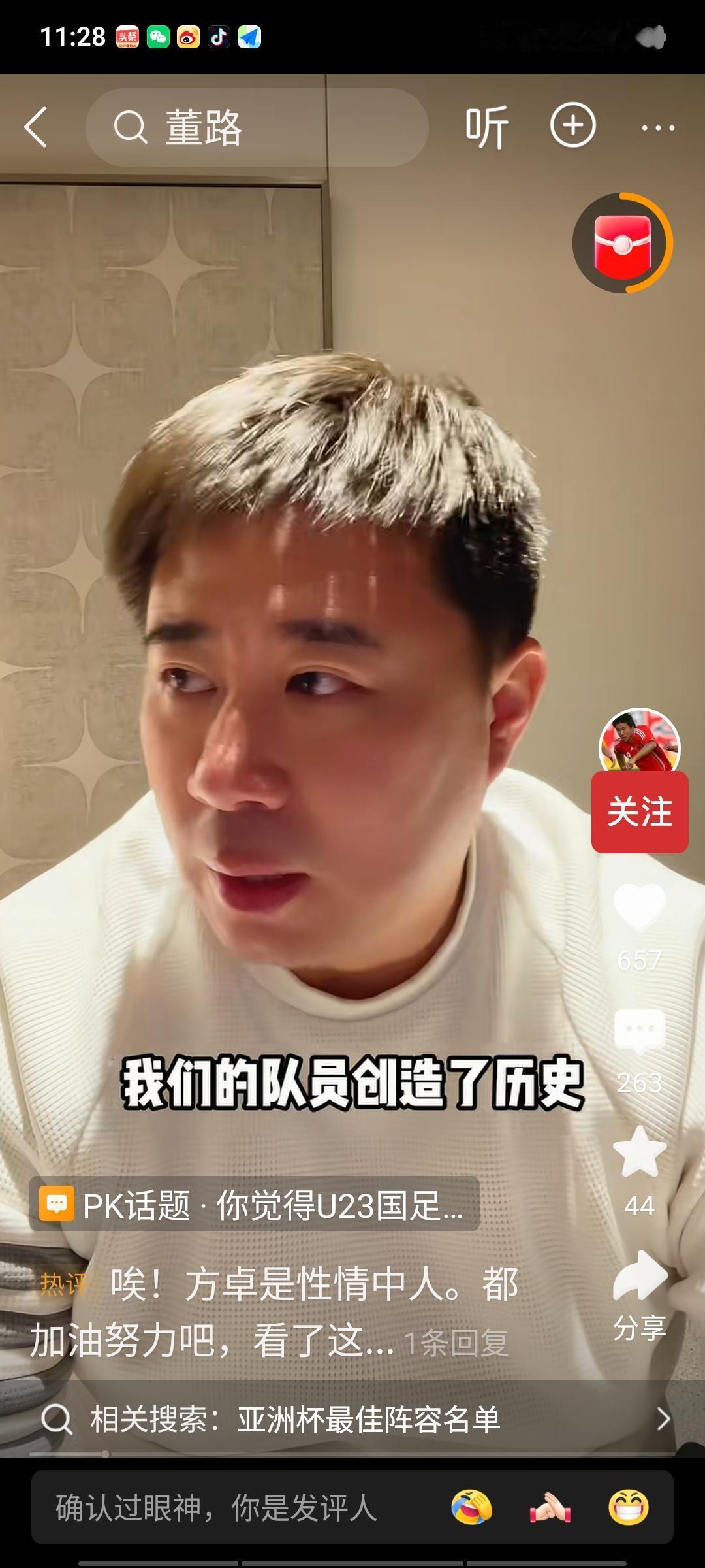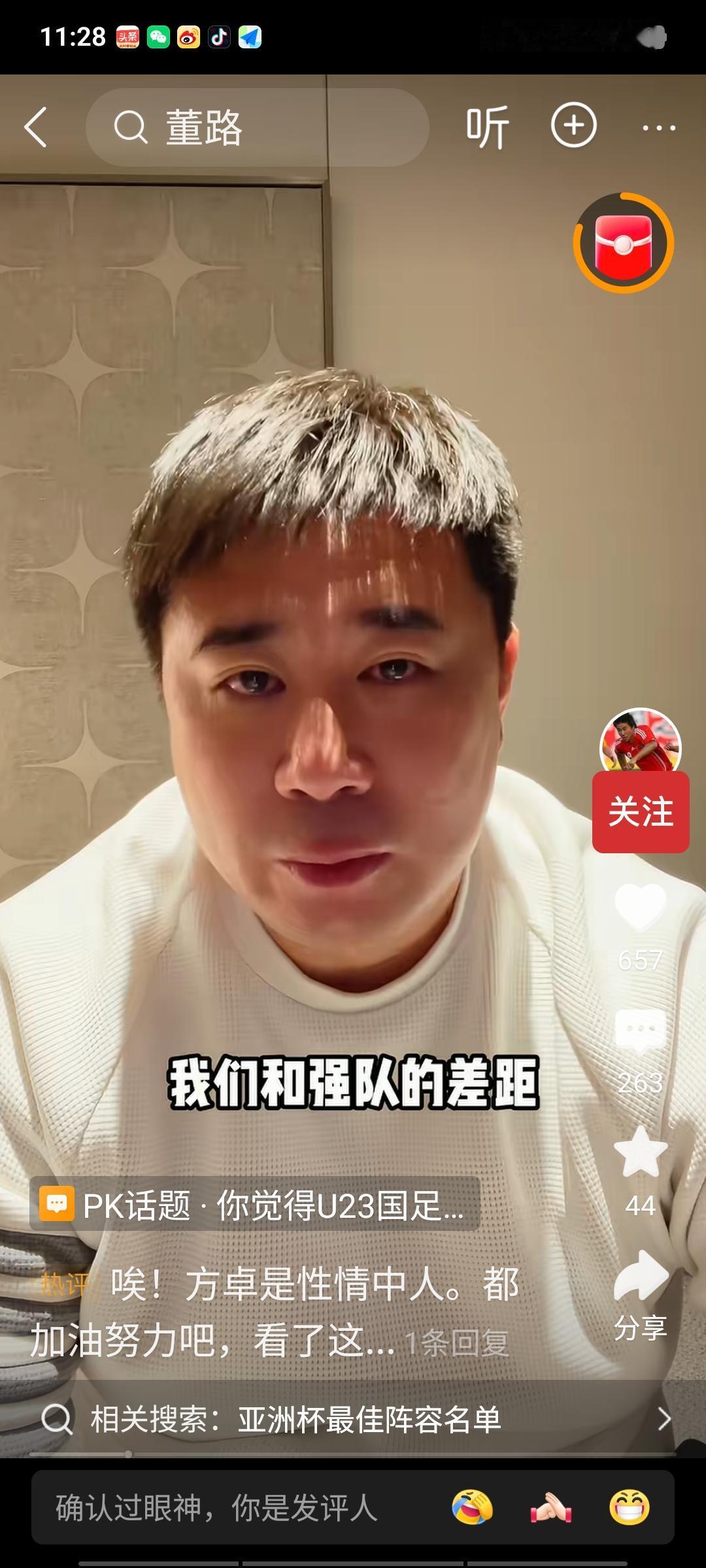 董方卓出来道歉了!他表示,对前段时间发表的言论深感懊悔,因为那些话伤害了球员和广大球迷的心。谈及昨天的决赛输球,董方卓不禁哽咽落泪。 前段时间,中国队点杀乌兹别克队后,董方卓口无遮拦,一句“屎味巧克力”彻底否定了球员们的努力,这一言论遭到了广大球迷的猛烈炮轰。迫于网络压力,他担心人设崩塌,不得不出来道歉,模样十分可怜。他还强调,自己比任何人都希望中国队越来越好,更期望这支球队能不断完善、日益强大。