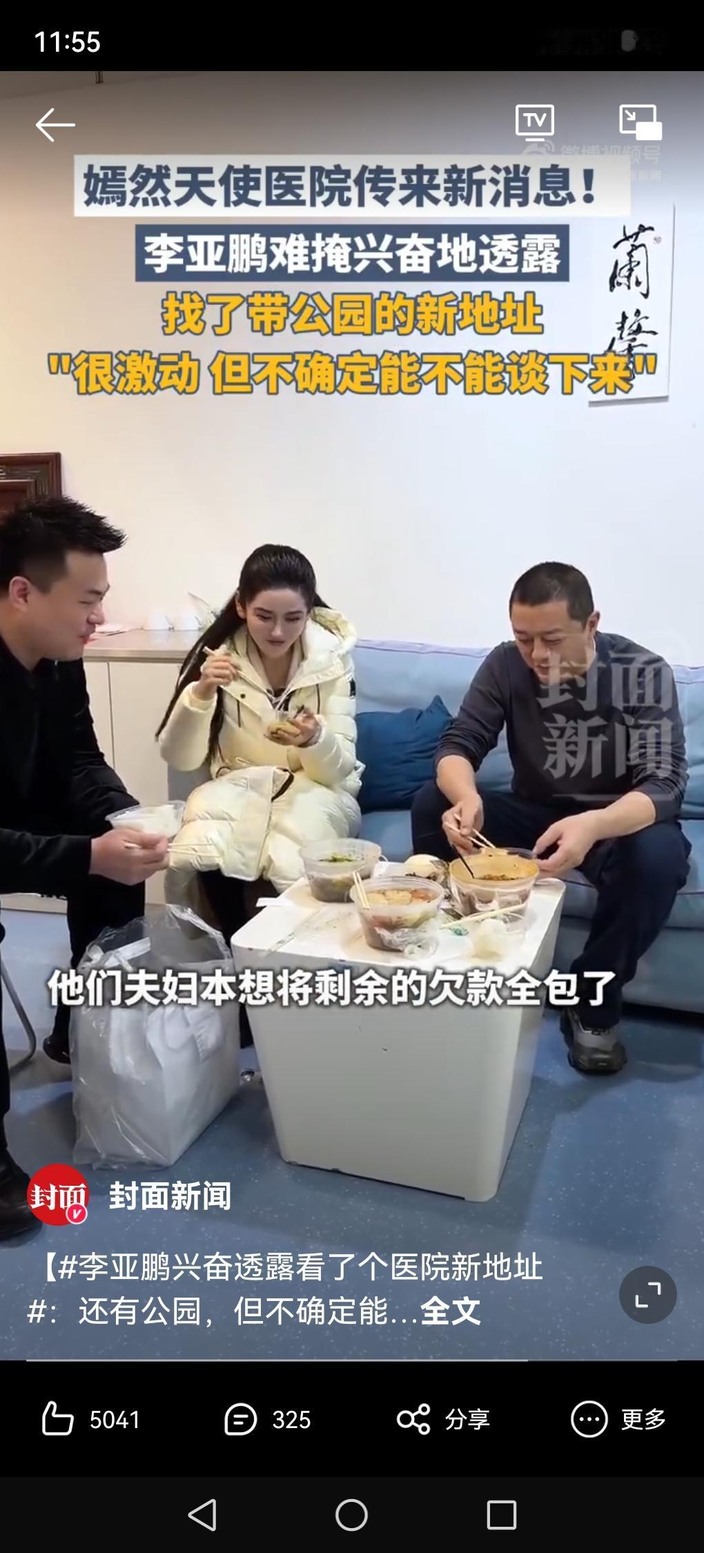 嫣然天使儿童医院的“欠租风波”还在持续发酵,最近又有了新动静。 1月21日,李亚鹏现身医院,和爱心人士一起给患病孩子合影打气,还激动地透露当天去看了个带公园的新地址,就是能不能谈成还不好说。 没多久就有爱心企业站出来,说愿意提供朝阳区八里桥公园内的场地,这儿之前就是医院,设备设施都现成,不用大动干戈。 可这边新址还没敲定,另一边房东也有了动作。1月22日,房东张某的代理律师明确表示,正在起草说明要陈述己方立场。 其实这事儿里,医院是公益属性,欠租有经营困难的客观原因,大家心疼患儿想帮一把能理解;但房东按合同收租也合情合理,之前法院都判了医院违约该腾退、付欠款,房东的合法权益也得保障。 公益不能成为违约的挡箭牌,契约精神也得给善意留空间。现在有爱心场地伸出橄榄枝,房东也准备公开立场,希望双方能坐下来好好谈。 毕竟最终目的都是让医院能继续救治孩子,既不让公益寒心,也不让守约方吃亏,这才是大家最想看到的结果。 期待后续能有圆满解决方案,让唇腭裂患儿们的治疗不受影响。嫣然天使公益