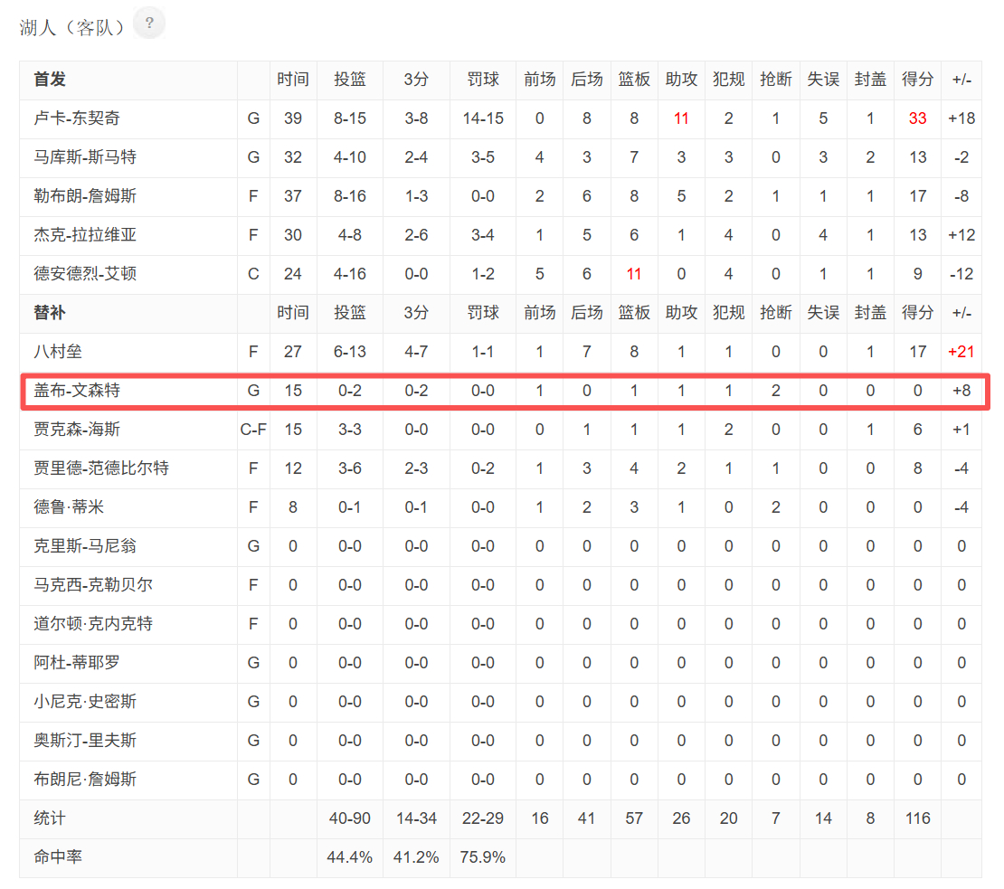 正负值+8,对球队的帮助很大,建议多用。湖人
