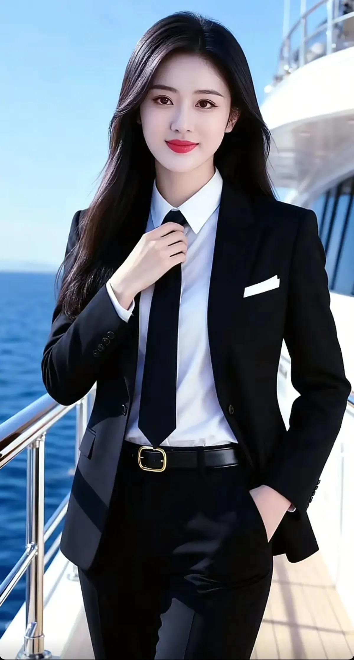 优雅的海边商务风,黑色西装搭配白色衬衫,尽显职场魅力!