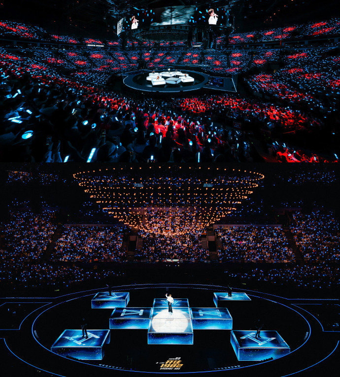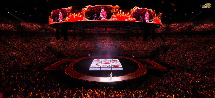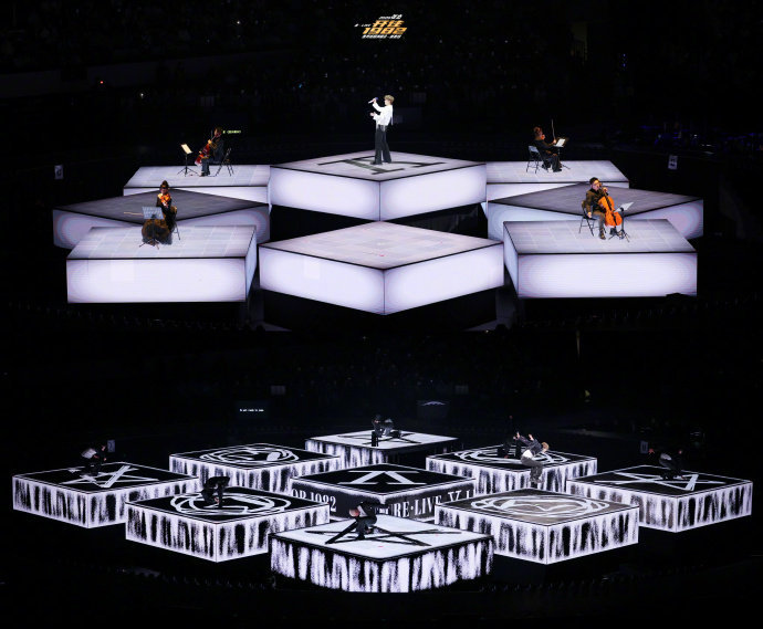 张杰成都演唱会新春场的龙门阵洛希极限2.0四面台有会移动的移动台里面的龙门阵九宫