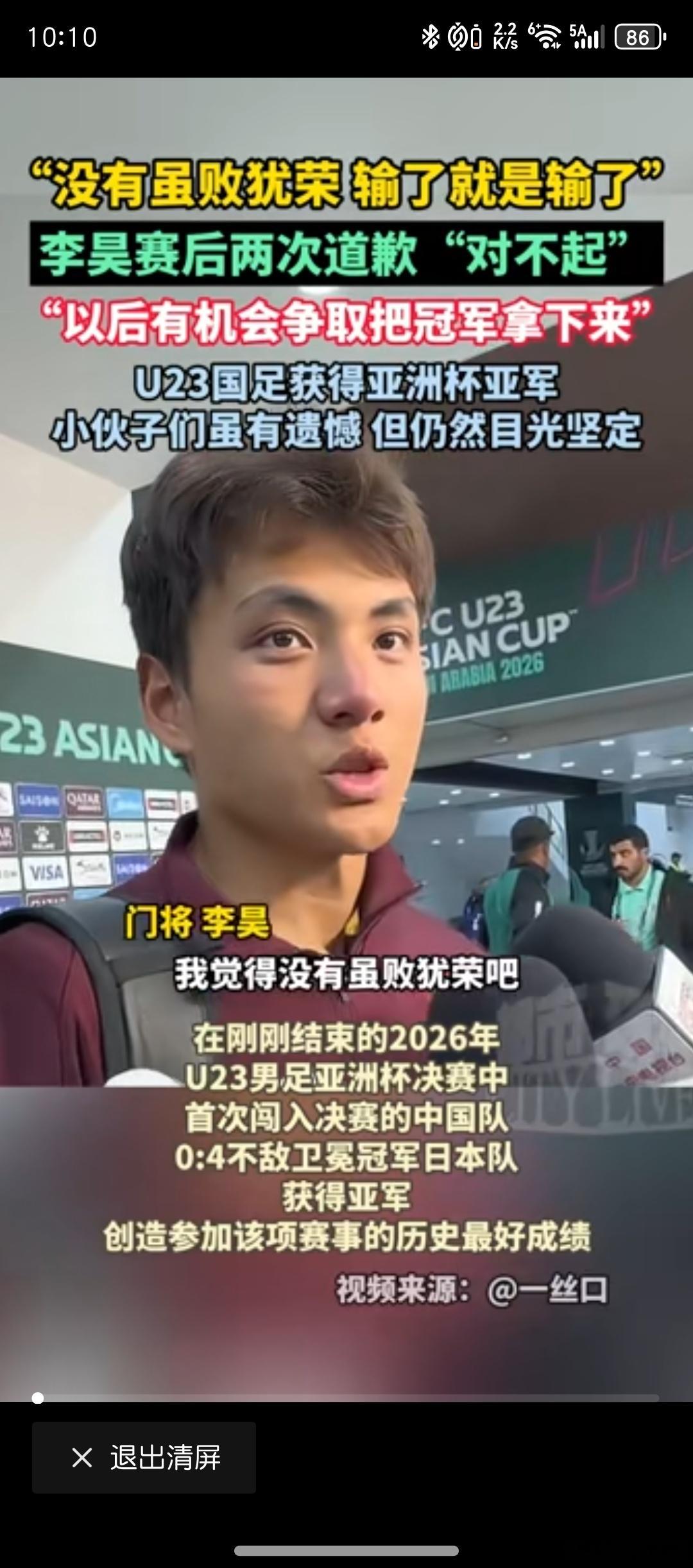 U23国足0比4日本队 小伙子们好样的,守门员李昊说没有虽败犹荣,以后争取拿下冠军!这才是有朝气的年轻人!加油国足小将们!