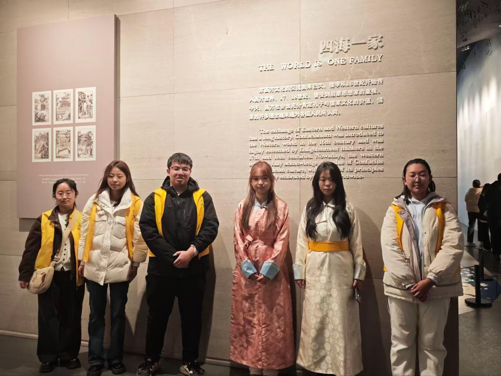 秦岭笑谈 【访孔博品儒韵,传文脉促交融】曲阜师范大学寒假社会实践青春三下乡学子显担当大学生寒假社会实践三下乡 2026年1月5日,曲阜师范大学教育学院“教萦石榴籽,育凝九州志”实践队走进孔子博物馆,开展沉浸式儒家文化研学活动。本次活动以“访孔博品儒韵,传文脉促交融”为主题,旨在让来自不同民族的青年学者通过实地探访、亲身体验,近距离体会儒家文化的深厚底蕴,在文化传承中凝聚民族共识,助力乡村振兴。实践队员先后驻足观看孔子主题影像,在光影交织中重温先贤生平事迹;探访“四海一家”展区,在文物史料的浸润中感受多元一体的文化格局;聆听“和而不同”专题讲解,在互动探讨中体悟“仁礼”思想与“大同”理念的核心内涵。身着各民族特色服饰的实践队员,在古朴的展陈前驻足凝思、互动交流,青春身影与千年文脉交相辉映,生动诠释了新时代青年传承弘扬中华优秀传统文化的使命担当。此次活动,不仅让队员们沉浸式领略了儒家文化跨越时空的生命力,也为各民族学子搭建了推动文化交流助力乡村振兴的桥梁。