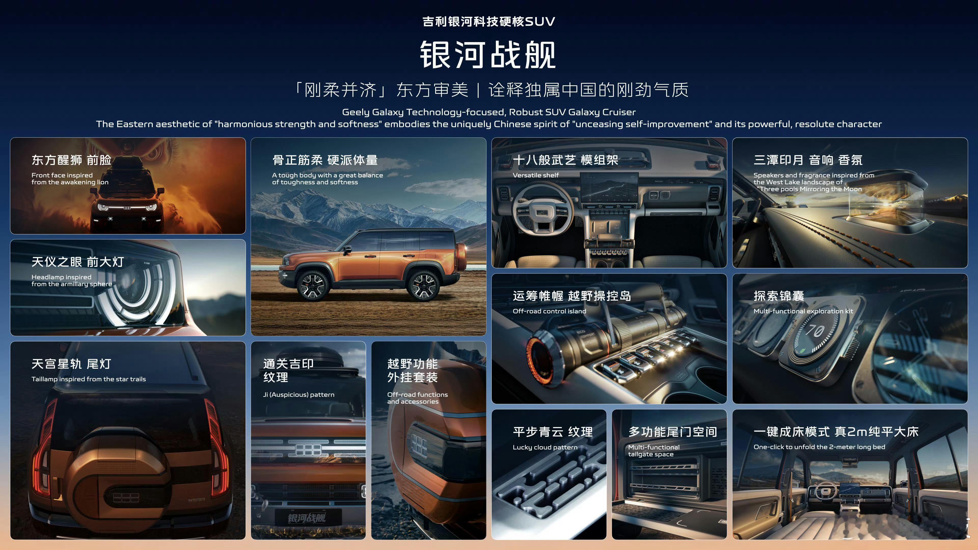 对标奔驰大G和路虎卫士!吉利银河首款方盒子要来了,方程豹要亚历山大了?吉利银河战舰,在2025年中的时候,曾有消息透露新车预计将会在2025年底上市,但因产品规划的原因有所延后。最新消息方面,据吉利设计工作室总监Flavien Dachet透露,该车计划在今年年底前率先在中国上市。并且吉利汽车英国市场负责人Yan Tianxiao也明确表态,银河战舰“ 肯定会在英国推出 ”。这也将会是吉利品牌首款推向海外的方盒子越野SUV车型。根据此前的更多相关资讯了解,战舰的底盘配置非常丰富,搭载了全域AI智能底盘技术,能够实现全场景自主切换前驱、四驱、后驱。动力方面,该车的动力参数在吉利银河序列中会非常高,预计会搭载1.5T发动机+双/三电机系统,支持纯电、混动、增程三模式自动切换,电池可能搭载超50kWh大电池。而据海外渠道相关媒体口中了解,该车可能是采用了SEA-S架构(2.0T发动机动力总成),但从此前了解的资讯来看,该消息还有待核实。而国内版本车型很有可能依然还是会采用GEA-Evo架构。从已知的信息来看,这款新车的动力配置/造型/内饰质感等方面都是非常有分量感的,方程豹要亚历山大了?吉利银河战舰